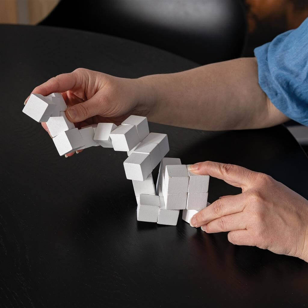 Drevený hlavolam vo forme do seba zapadajúcich častí, ktoré pri poskladaní tvoria kocku. Rozloženie je ľahké, zloženie do formy kocky je však už poriadny oriešok! Ideálna hra pre zábavu a aktívne zapojenie mozgových závitov. Vrátane vrecúška z plátna pre ľahké skladovanie. Vyrobené z dreva s FSC® certifikáciou. Balené v FSC® kraftovej darčekovej krabičke.
