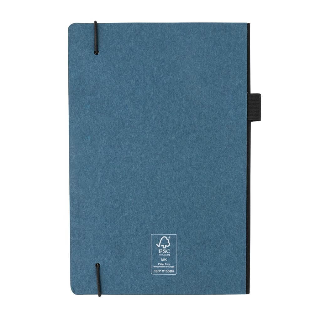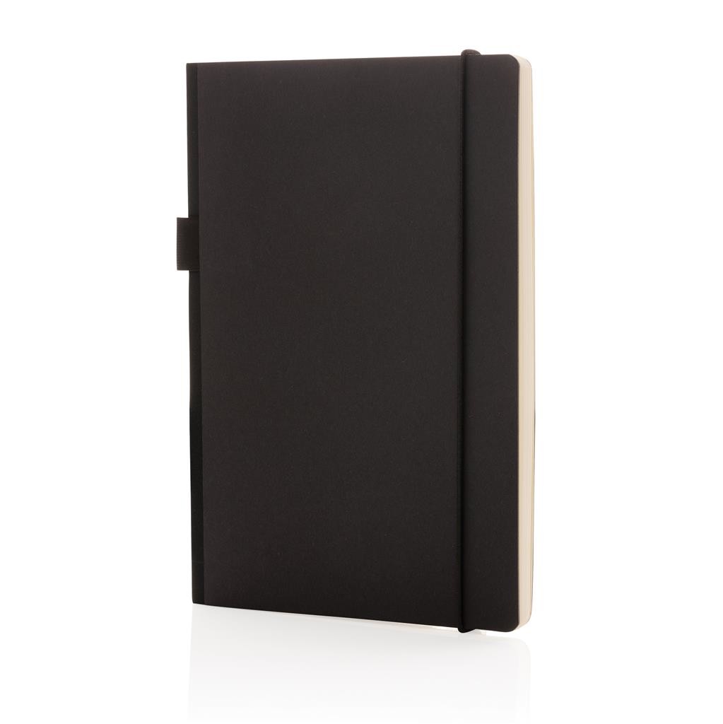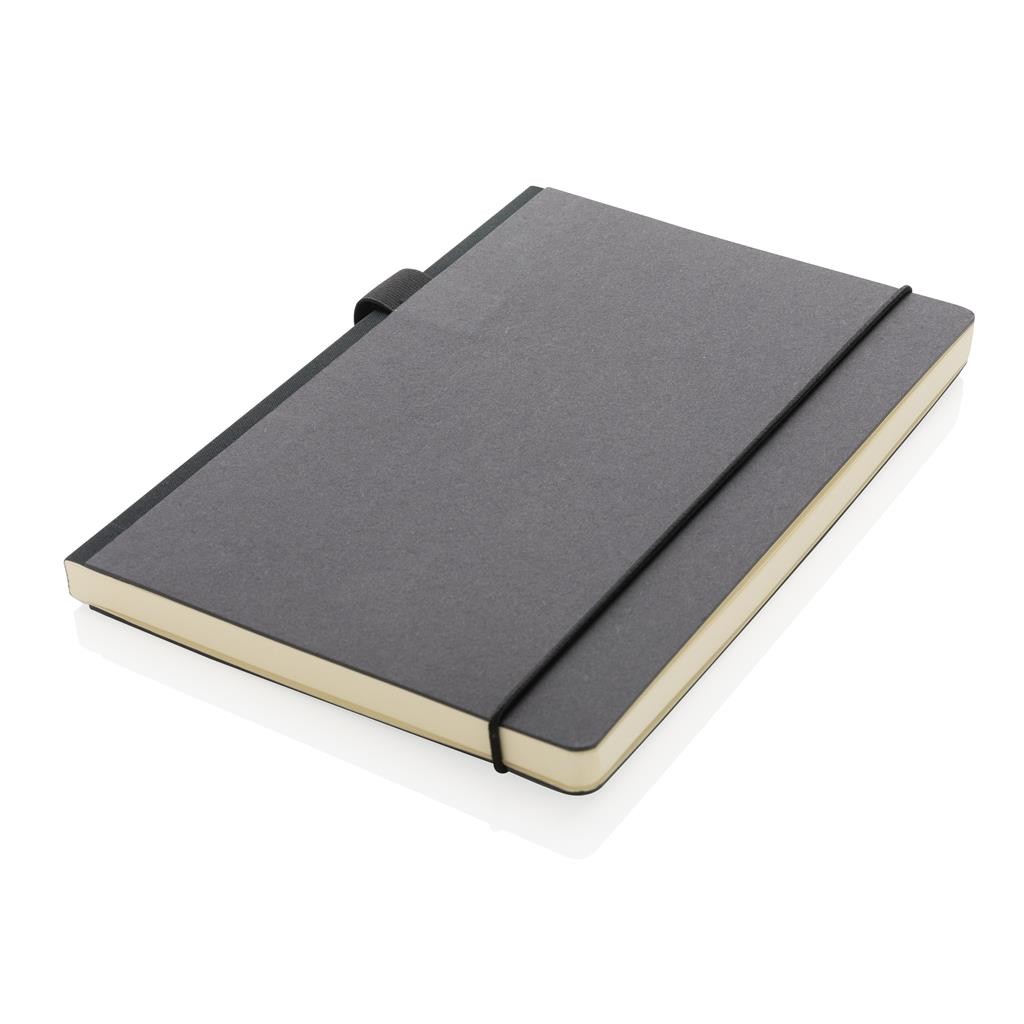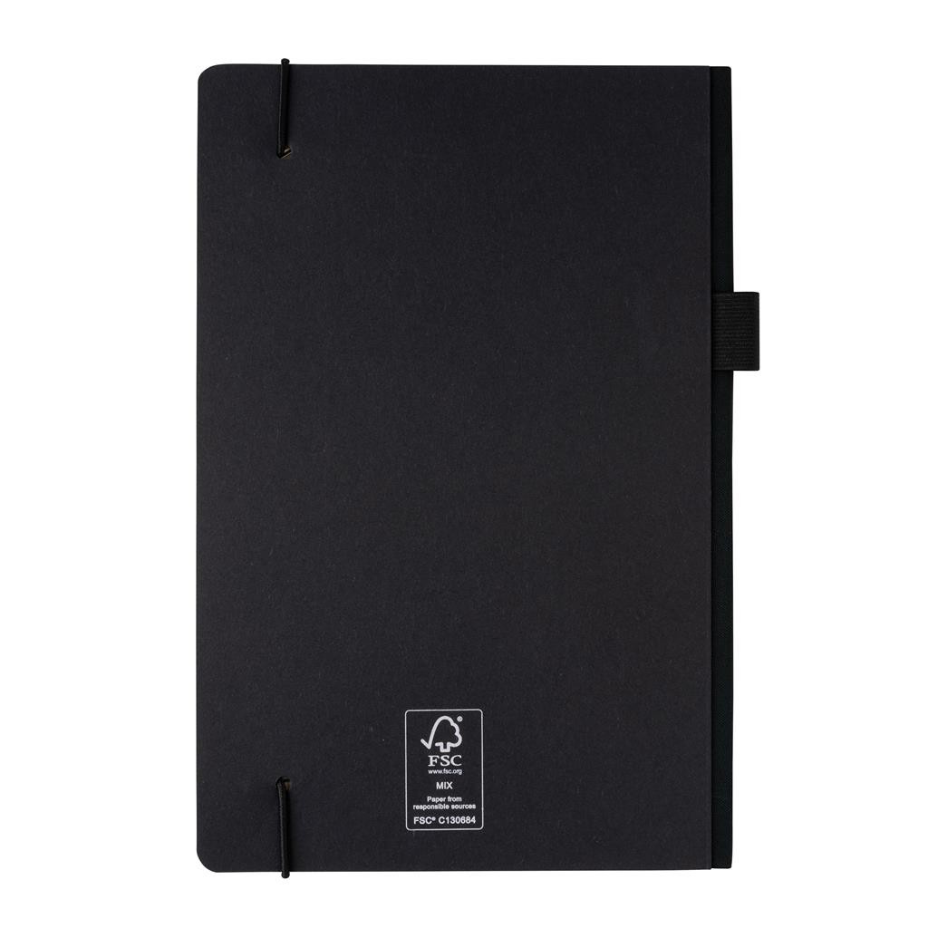 Poznámkový blok vo formáte A5 s tvrdou väzbou z FSC® certifikovaného papiera. Záložka a pútko na pero v zladenej čiernej farbe. Vrecko v zadnej časti na uchovanie poznámok. Obsahuje 80 listov/160 strán krémového linajkového FSC® certifikovaného papiera.