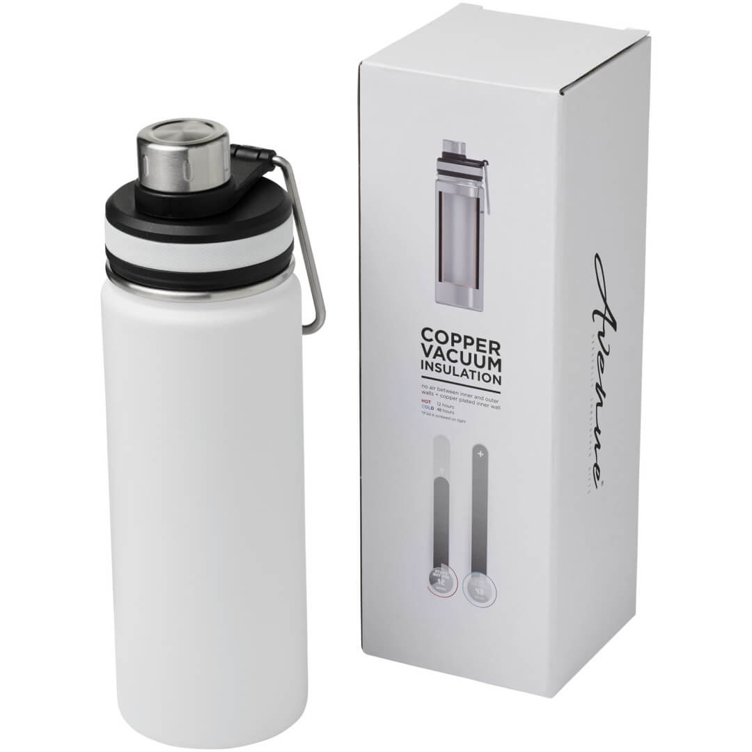Gessi 590 ml športová fľaša s vákuovo-medenou izoláciou. Odolná, dvojstenná konštrukcia z nerezovej ocele s vákuovou-medenou izoláciou, ktorá udrží vaše nápoje teplé po dobu minimálne 12 hodín a studené po dobu 48 hodín. Na vonkajších stenách termosky naviac nedochádza ku kondenzácii. Obsahuje skrutkovacie viečko z nerezovej ocele s pohodlným úchytom pre prenášanie. Duálny konštrukcia otváranie pre jednoduché čistenie a plnenie. Objem 590 ml. Výrobok je dodávaný v darčekovej krabičke Avenue. Nerezová oceľ.