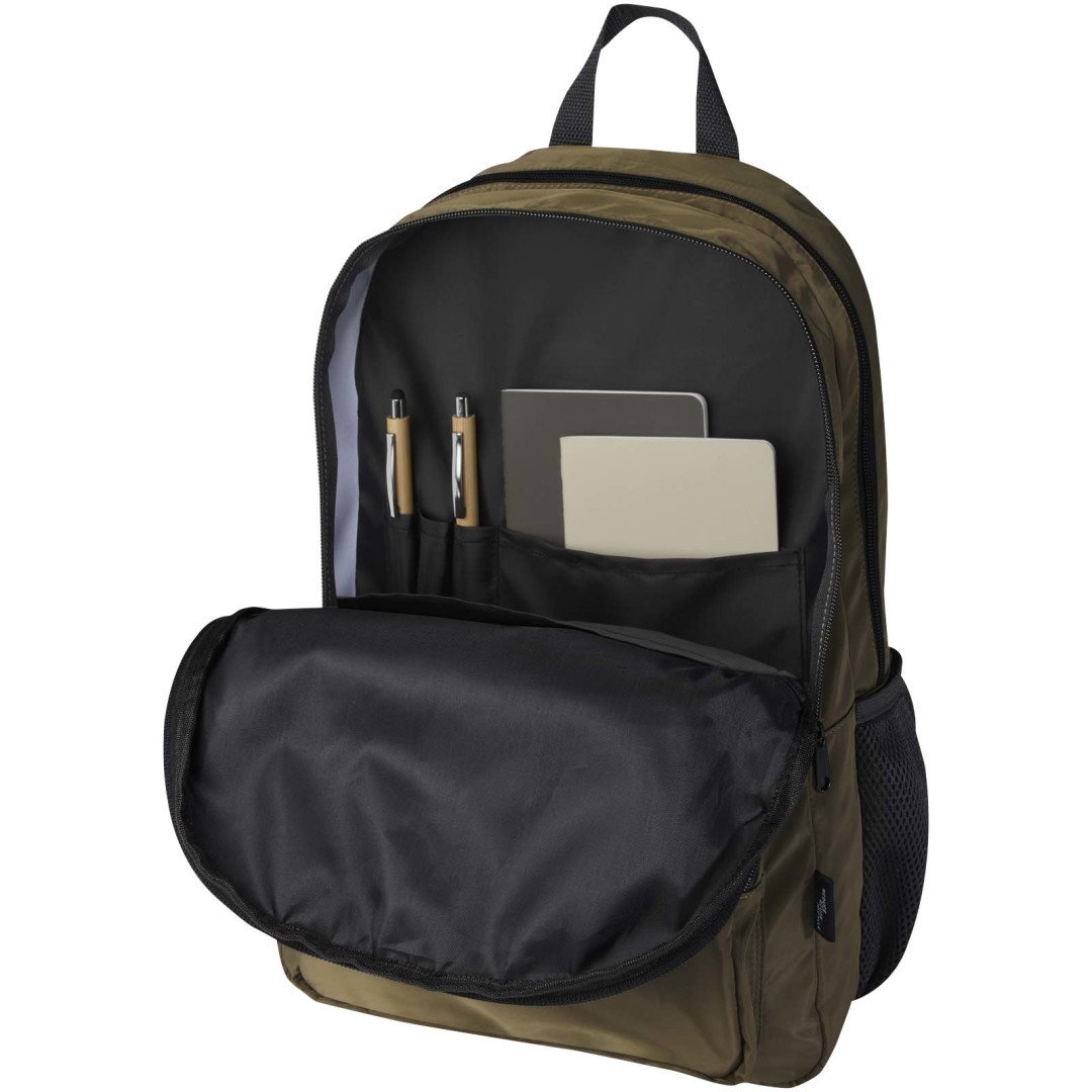 Batoh Trend Plus je vyrobený z recyklovanej mäkkej a nekrčivej tkaniny s certifikáciou GRS a kvalitné podšívky z RPET. Batoh má priehradku na 15” notebook, organizačnú priehradku, predné vrecká na zips, bočné elastické sieťované vrecká a chrbát zo vzdušnej sieťoviny s popruhom na upevnenie na kufor na kolieskach. Nastaviteľné ramenné popruhy pre optimálne pohodlie pri nosení. Objemová kapacita: 20 litrov. Nosnosť do 10 kg. Neobsahuje PVC.