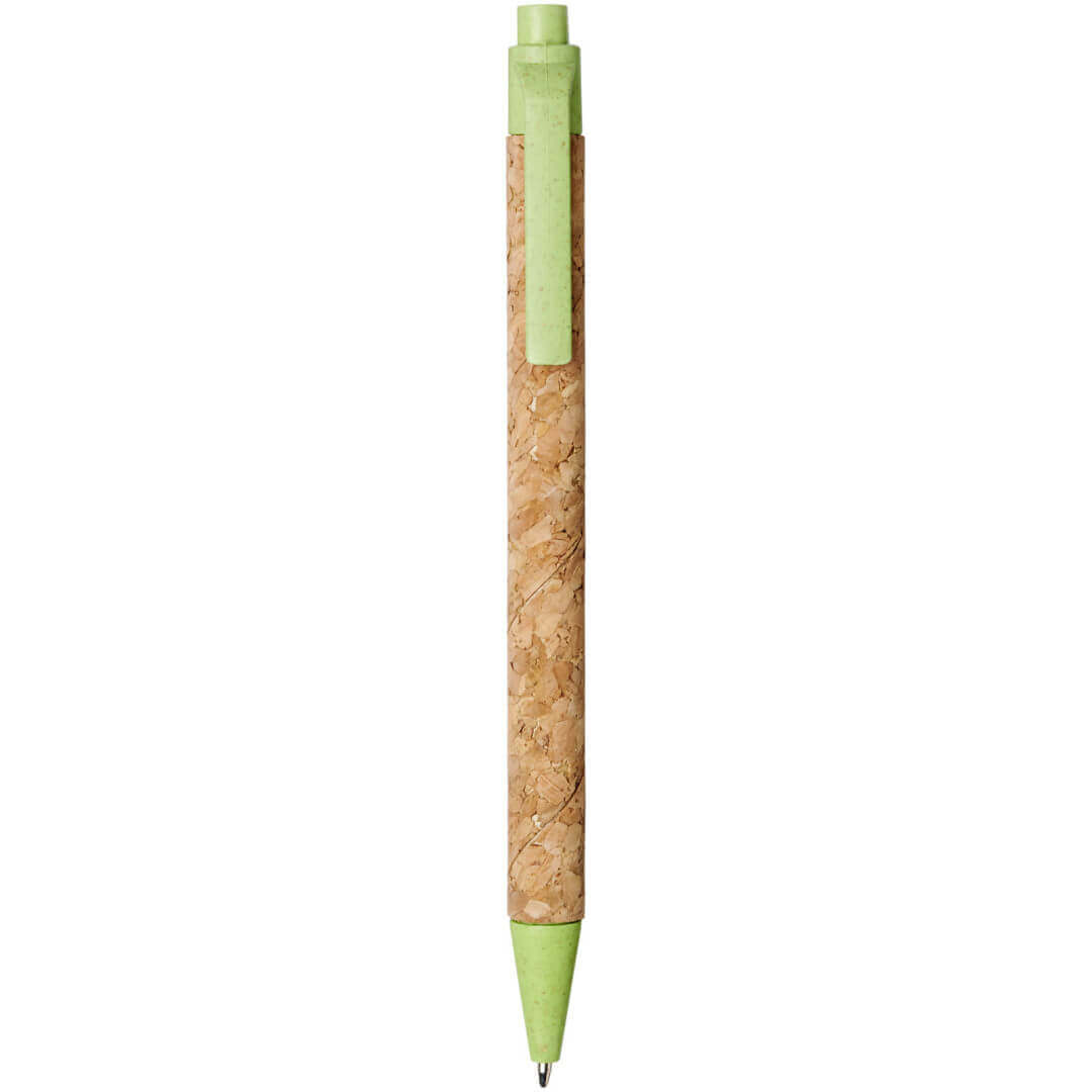 Guľôčkové pero Midar z korku a pšeničnej slamy. Ekologické guľôčkové pero so stláčacím mechanizmom, telom vyrobeným z korku a doplnky z pšeničnej slamy v rôznych farbách. Pšeničná slama je zvyškový materiál po zbere pšeničného obilia. Znižuje množstvo použitých plastov a ponúka tak ekologickejšie alternatívu. Farba korkového materiálu sa môže rôzniť. Korok, plast s pšeničnou slamou.