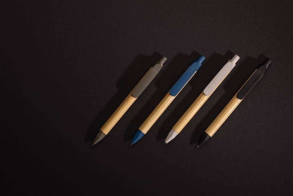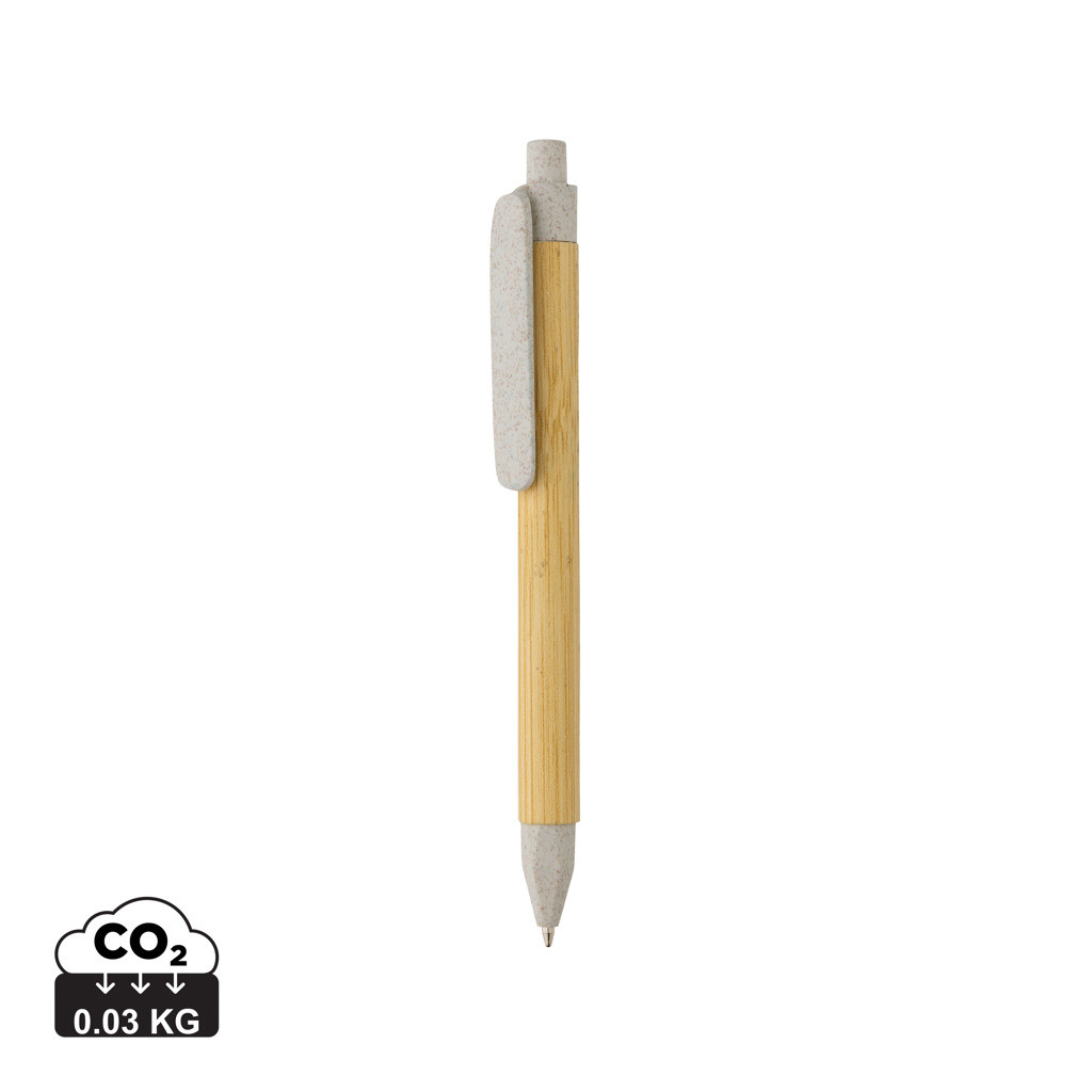 Moderné guľôčkové pero vyrobené z FSC® recyklovaného papiera. Spracovanie, ktoré pripomína prírodný bambus. Klip vyrobený z pšeničnej slamy. Nemecká náplň s modrým atramentom Dokumental® na písanie až 1 000m textu. TC gulička pre skutočne príjemné písanie.