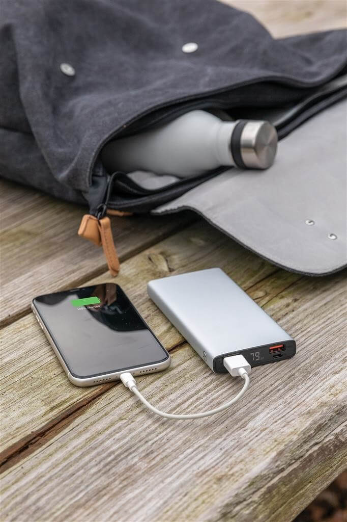 Hliníková powerbanka s ultra rýchlymi USB C a QC 3.0 USB A výstupy. Power delivery (PD) zaisťuje tú najvyššiu rýchlosť nabíjania. Kvalitná lítium polymérová batéria série A s kapacitou 10 000 mAh plne nabije mobilný telefón až 5x. Vrátane indikátorov stavu nabitia. Micro USB vstup: 5V / 2A; USB C vstup: 5V / 3A, 9V / 2A, 12V / 1,5A. USB A výstup: 5V / 2,1 A; QC 3.0 výstup: 5V / 3A, 9V / 2A, 12V / 1,5A; USB C výstup: 5V / 3A, 9V / 2A, 12V / 1,5A 18W max (PD 3.0); USB A výstup: 5V / 3A, 9V / 2A, 12V / 1,5A 18W (PD 3.0). Vrátane micro USB nabíjacieho kábla z TPE (PVC free). 1 batéria typu Li-poly v balení.