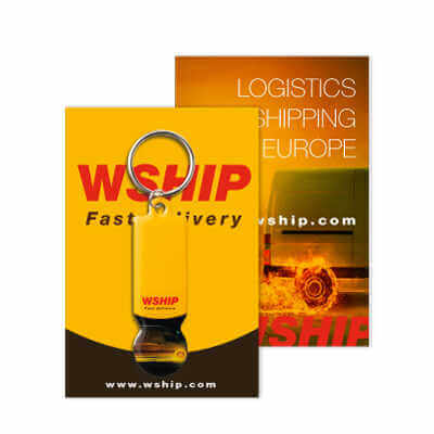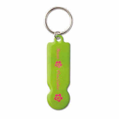 Hliníková kľúčenka do košíku na mieru (veľkosť spodnej zaoblenej časti približne ako 1 €). Plnofarebná tlač epoxidovým lakom na 1 strane. Rozmery: 75x23,2x1mm. Balené v sáčku a možnou plnofarebnou obojstrannou papierovou kartou.
