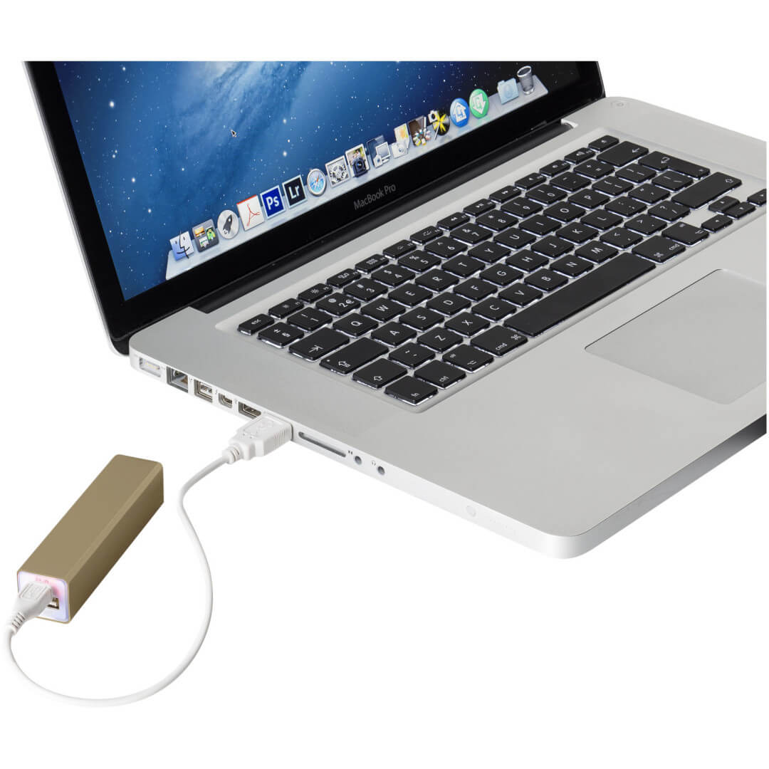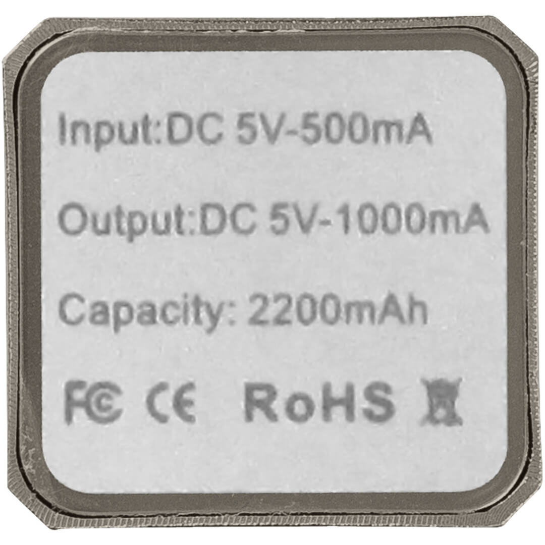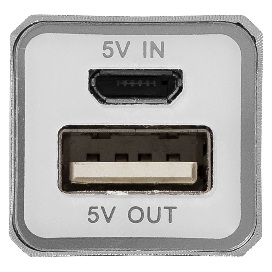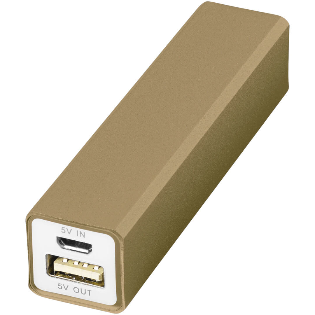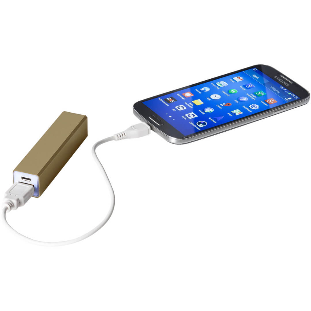 Hliníková PowerBank Volt, 2 200 mAh. Kapacita batérie 2 200 mAh tejto powerbanky je dostatočná pre dobitie mobilu či tabletu. PowerBank dobíja prostredníctvom priloženého USB káblu, po plnom dobití sa rozsvieti zelená kontrolka. Súčasťou balenia je biela lepenková krabica. Hliník.