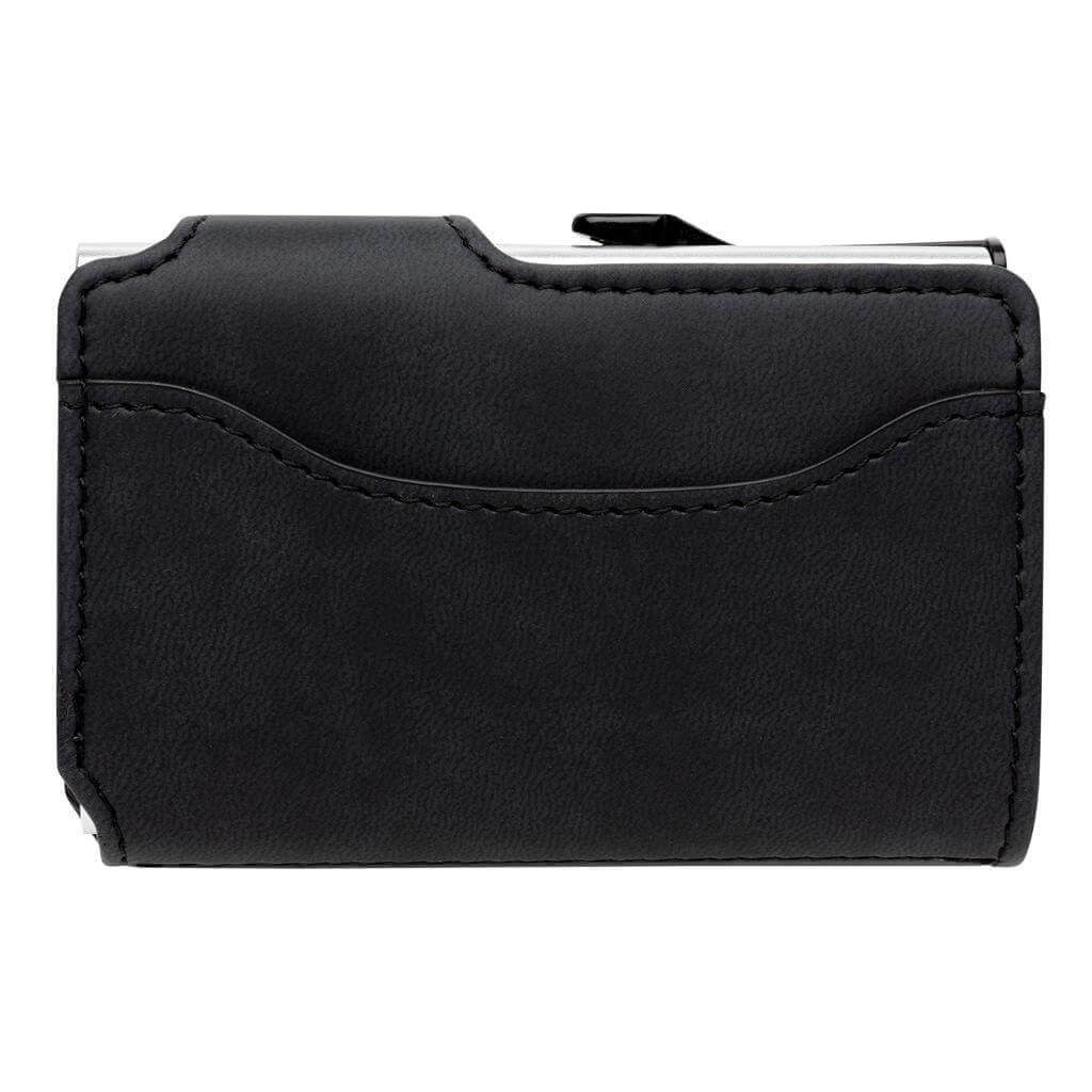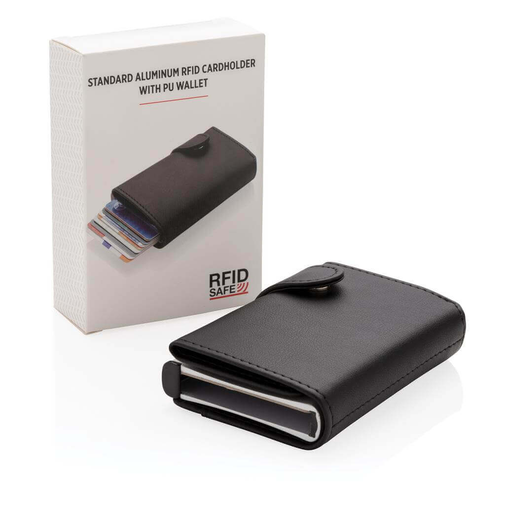 Pevné hliníkové puzdro chrániace karty pred skimmingom či fyzickým poškodením s PU peňaženkou. Pojme až 10 štandardných alebo 6 embosovaných kariet. Postranné jazdec pre postupné vysunutie všetkých kariet.