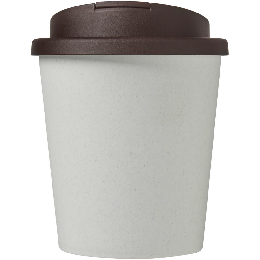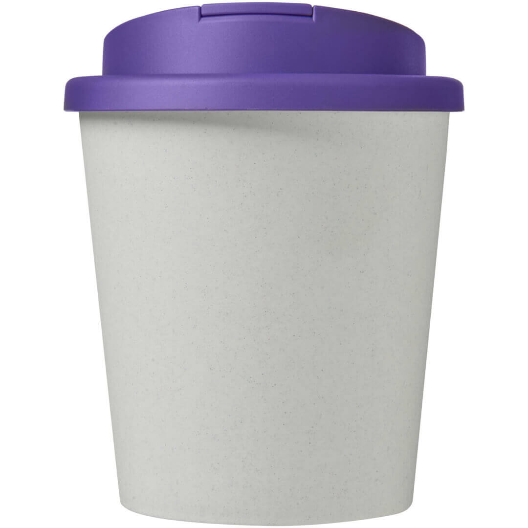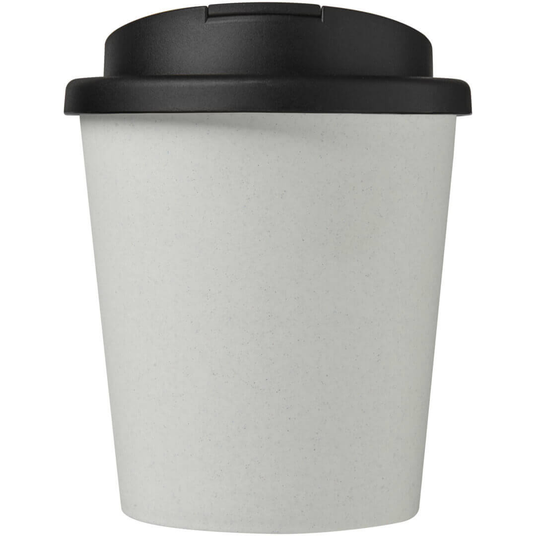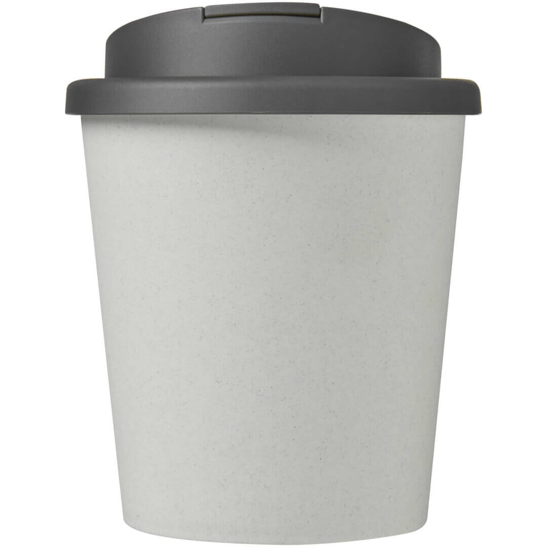 Téglik s tepelnou izoláciou s bezpečným nasadzovacím vekom proti rozliatiu s dvojitou stenou. Uzavreté spony veka lepšie zabraňujú rozliatiu a sú vyrobené bez silikónu pre plne recyklovateľný hrnček. Hrnček je vyrobený zo 100% recyklovaného PP plastu, viečko je vyrobené z potravinárskeho PP plastu. Objem je 250 ml. Obal je možné kompostovať v domácich podmienkach. Vyrobené v Spojenom kráľovstve.