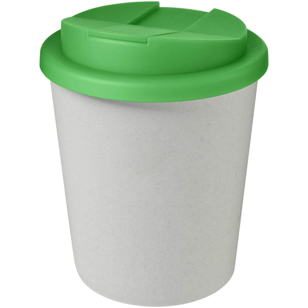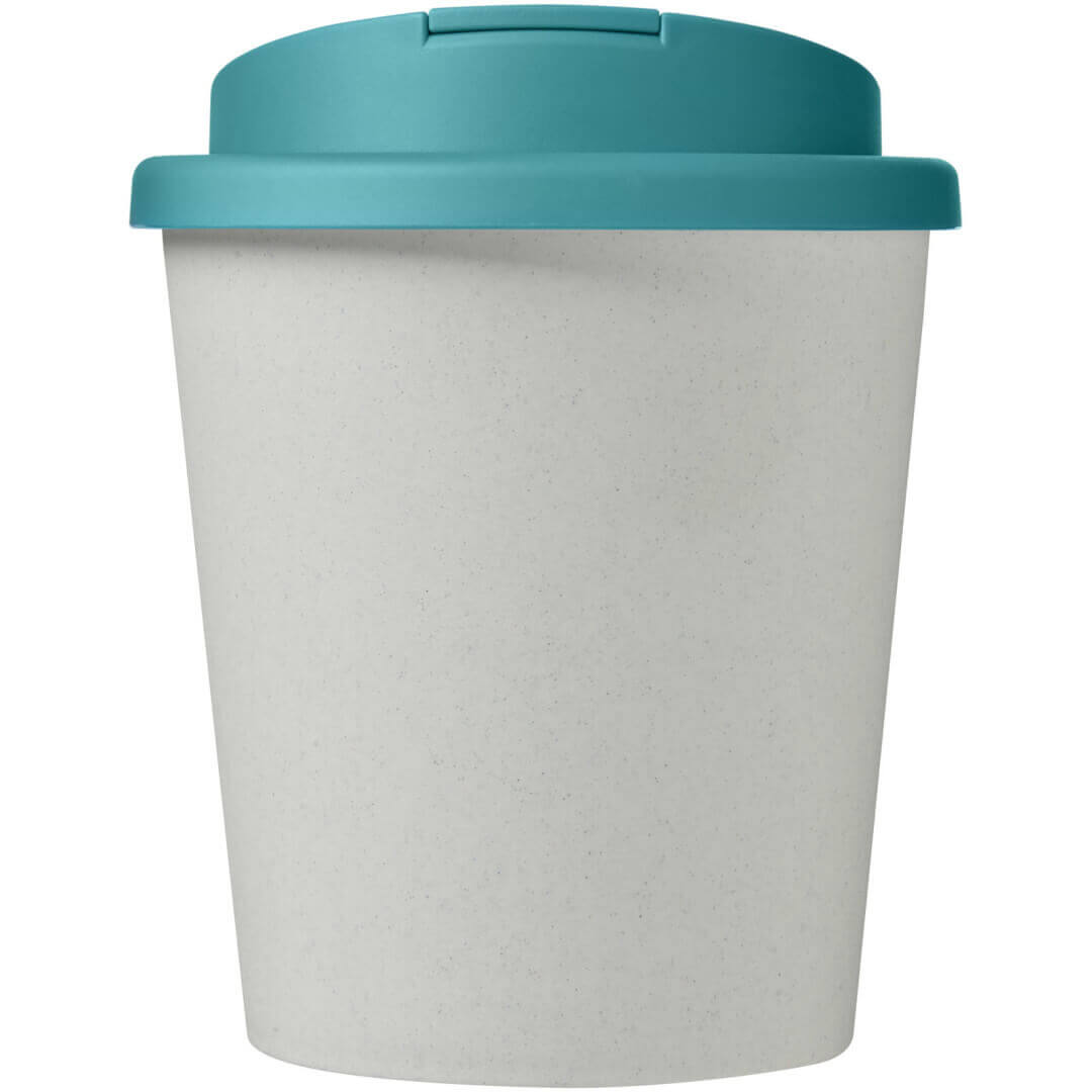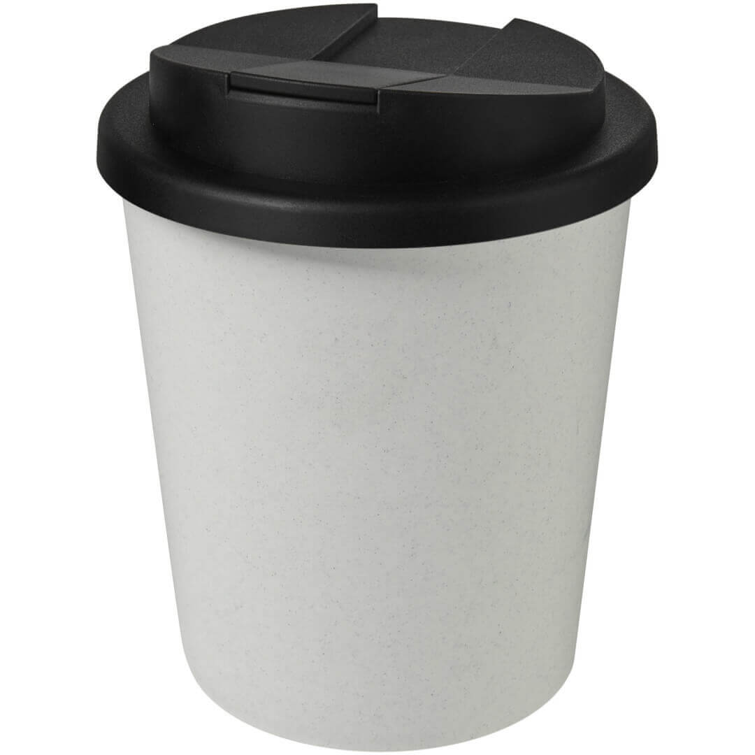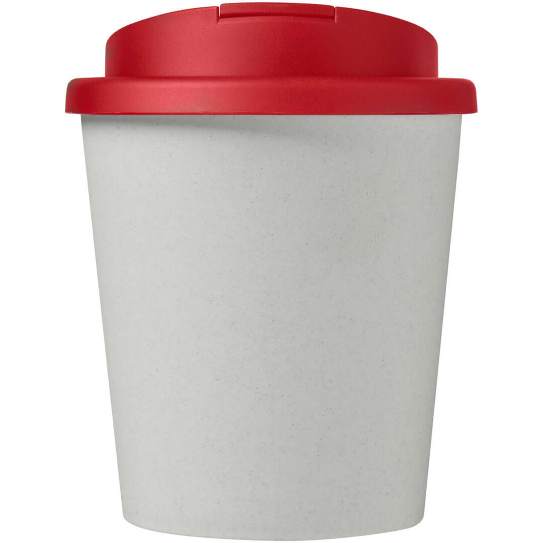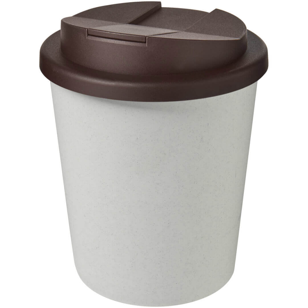 Téglik s tepelnou izoláciou s bezpečným nasadzovacím vekom proti rozliatiu s dvojitou stenou. Uzavreté spony veka lepšie zabraňujú rozliatiu a sú vyrobené bez silikónu pre plne recyklovateľný hrnček. Hrnček je vyrobený zo 100% recyklovaného PP plastu, viečko je vyrobené z potravinárskeho PP plastu. Objem je 250 ml. Obal je možné kompostovať v domácich podmienkach. Vyrobené v Spojenom kráľovstve.