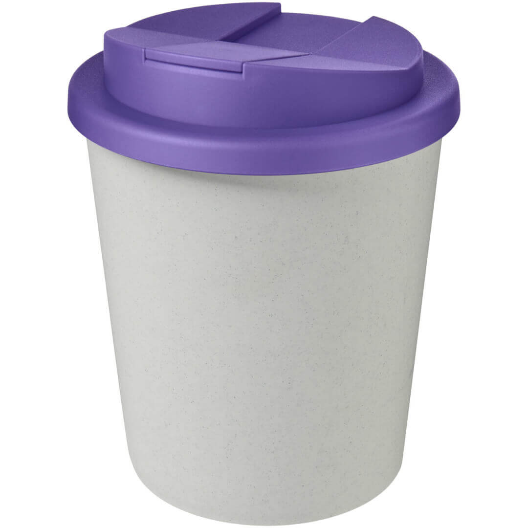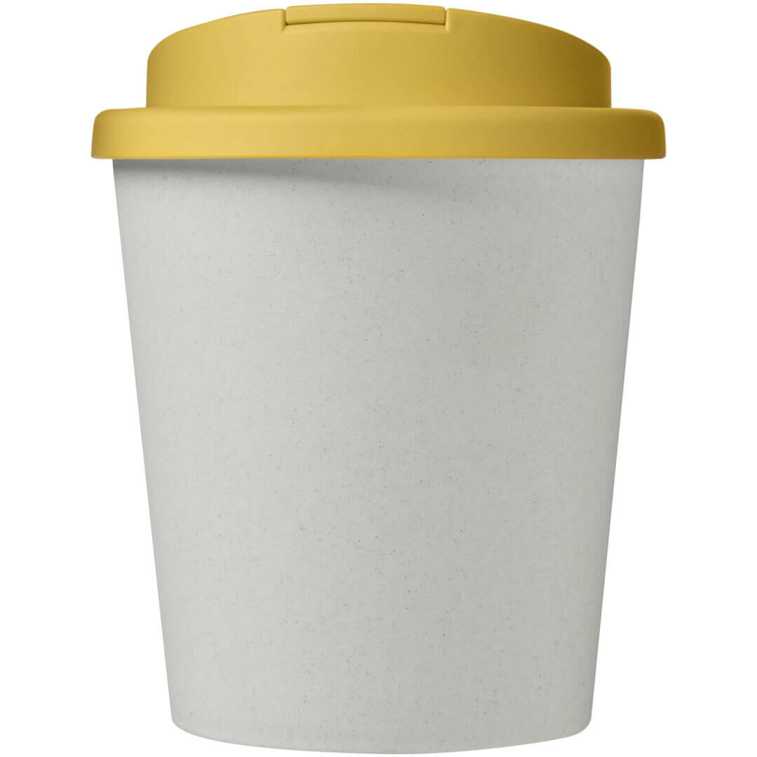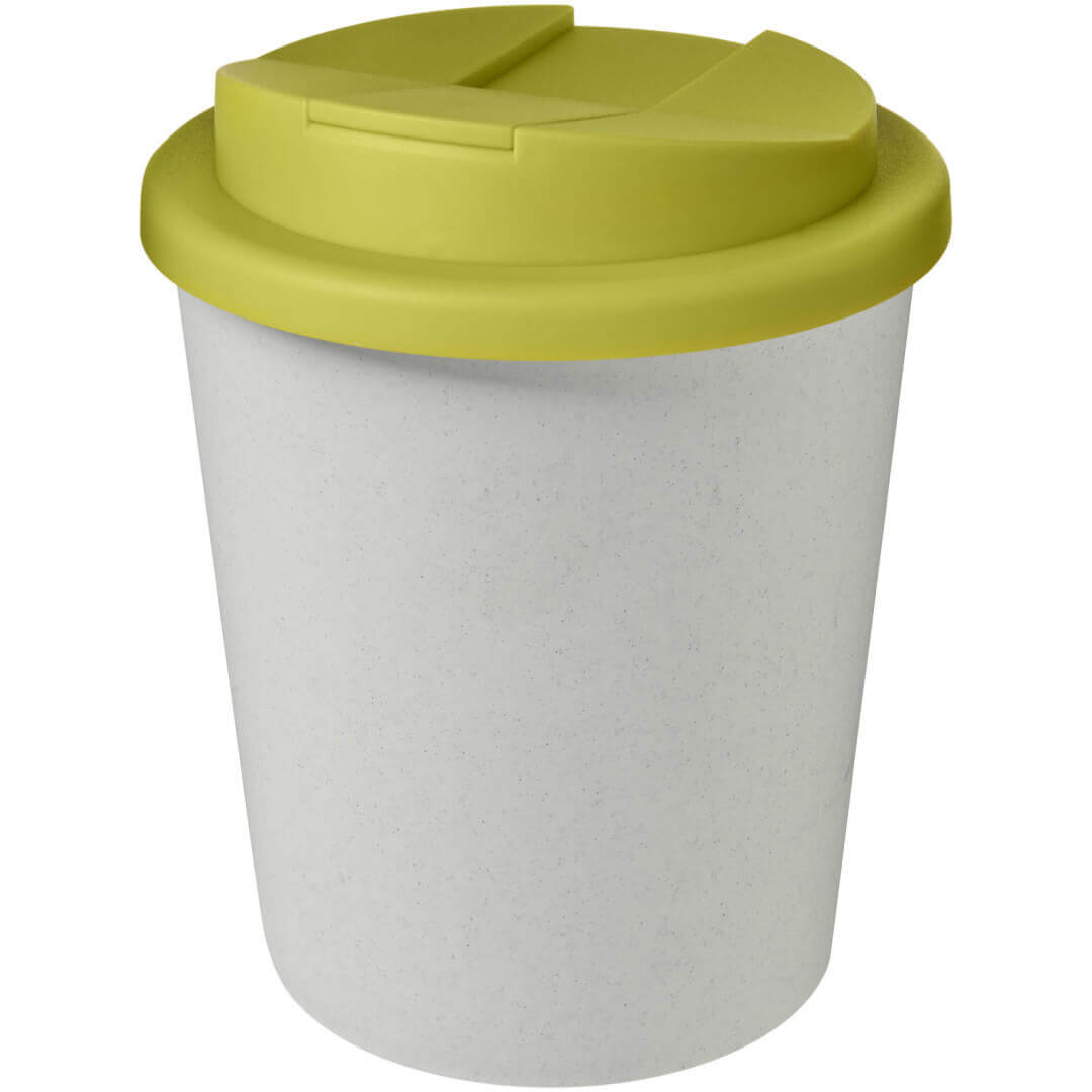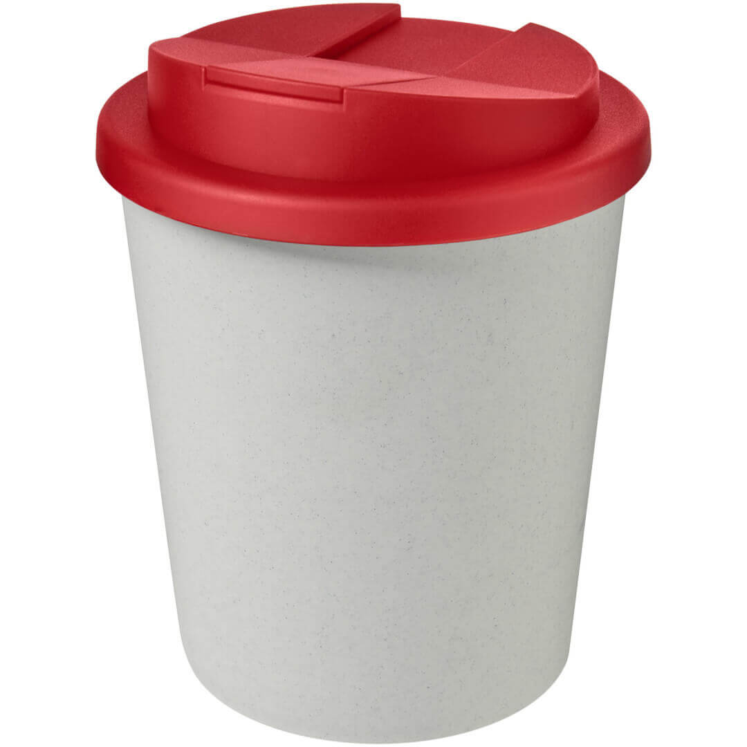 Téglik s tepelnou izoláciou s bezpečným nasadzovacím vekom proti rozliatiu s dvojitou stenou. Uzavreté spony veka lepšie zabraňujú rozliatiu a sú vyrobené bez silikónu pre plne recyklovateľný hrnček. Hrnček je vyrobený zo 100% recyklovaného PP plastu, viečko je vyrobené z potravinárskeho PP plastu. Objem je 250 ml. Obal je možné kompostovať v domácich podmienkach. Vyrobené v Spojenom kráľovstve.