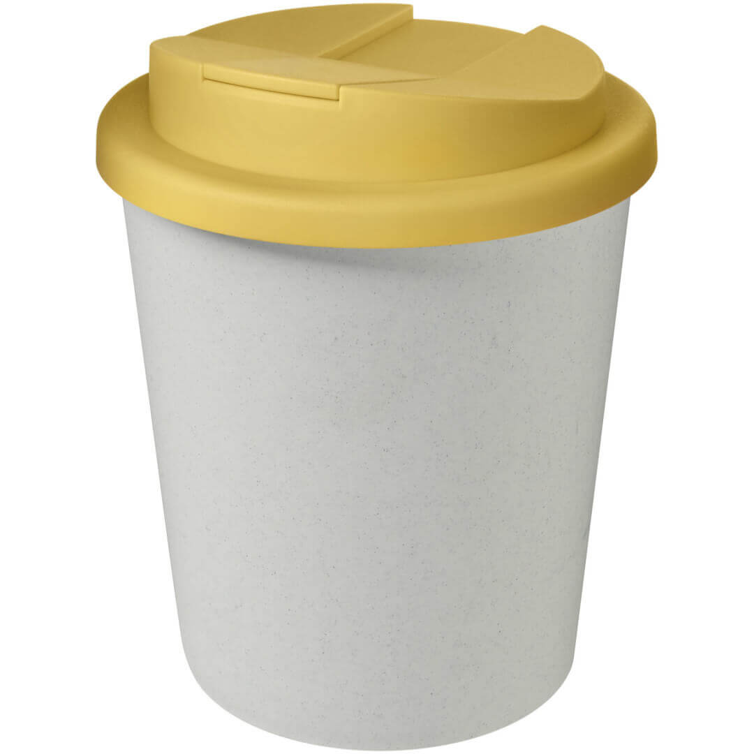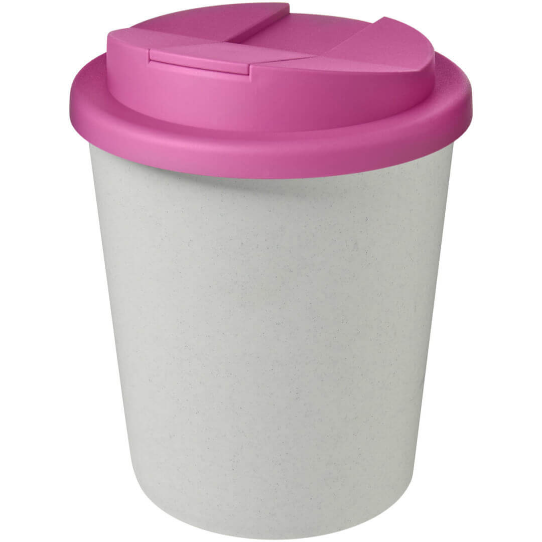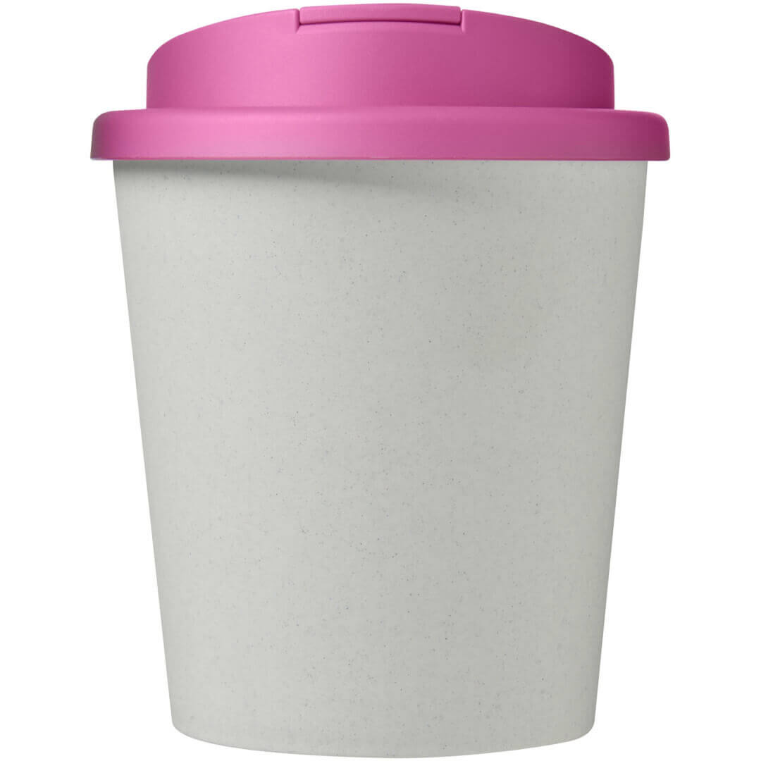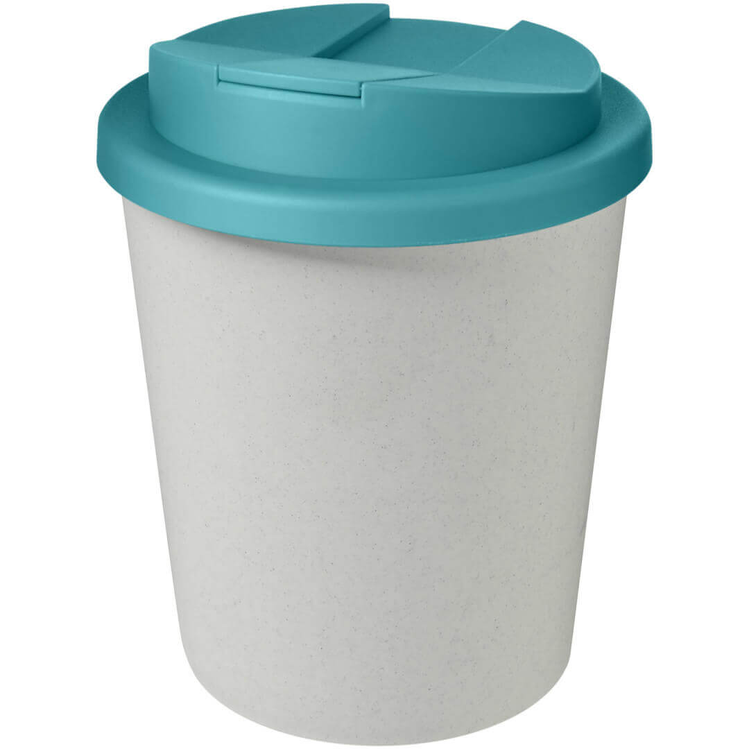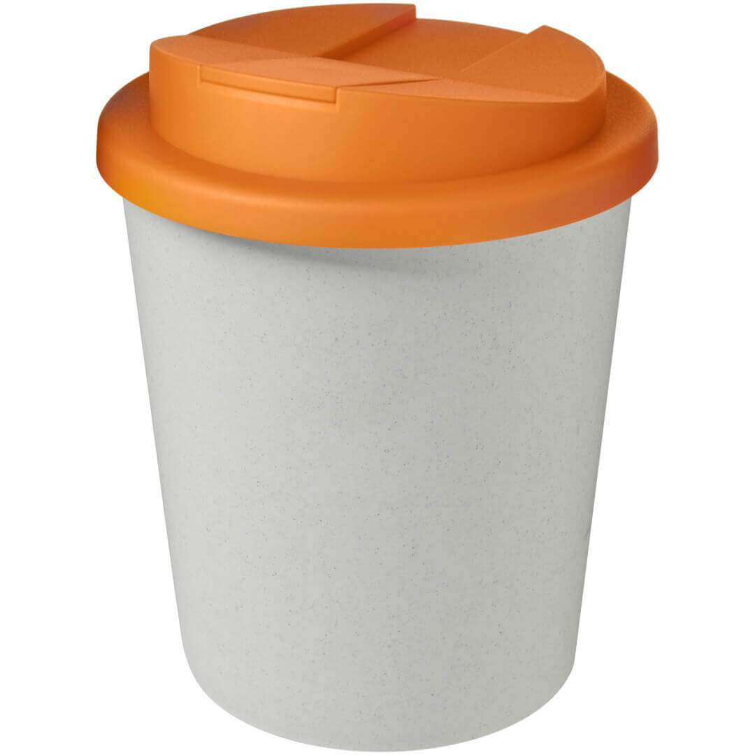 Téglik s tepelnou izoláciou s bezpečným nasadzovacím vekom proti rozliatiu s dvojitou stenou. Uzavreté spony veka lepšie zabraňujú rozliatiu a sú vyrobené bez silikónu pre plne recyklovateľný hrnček. Hrnček je vyrobený zo 100% recyklovaného PP plastu, viečko je vyrobené z potravinárskeho PP plastu. Objem je 250 ml. Obal je možné kompostovať v domácich podmienkach. Vyrobené v Spojenom kráľovstve.