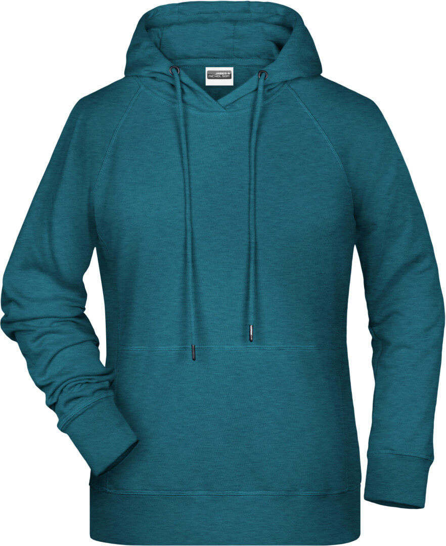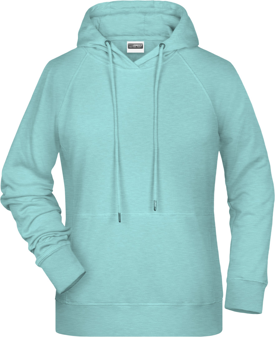 300g / m², 85% česaná Bio bavlna predpraná proti zrážaniu, 15% polyester Ľahko priliehavý strih, bočné švy v prednej časti, dvojvrstvová kapucňa so sťahovacou šnúrkou, manžety s elastanom, klokanie vrecko, vnútri zdrsnená, odtrhávací štítok