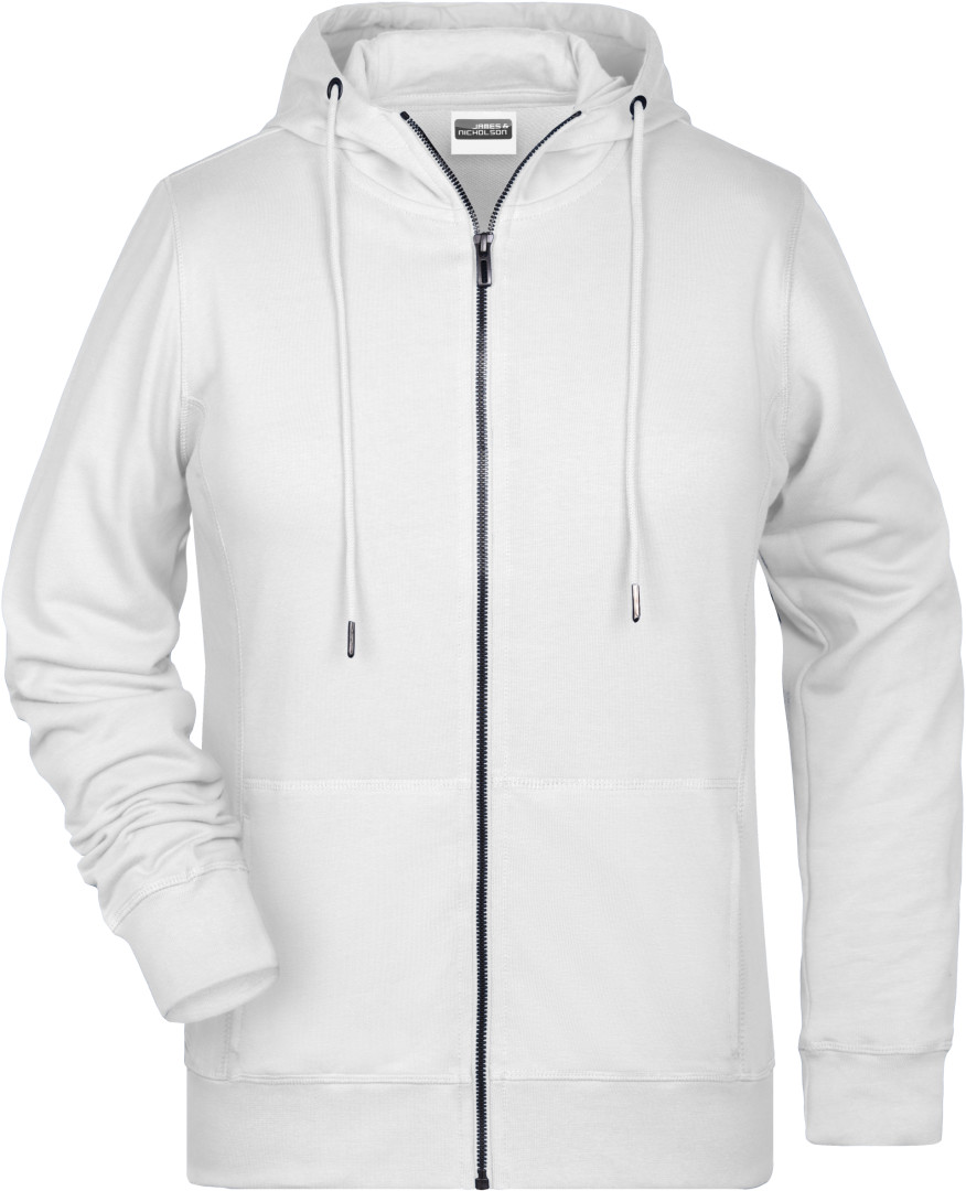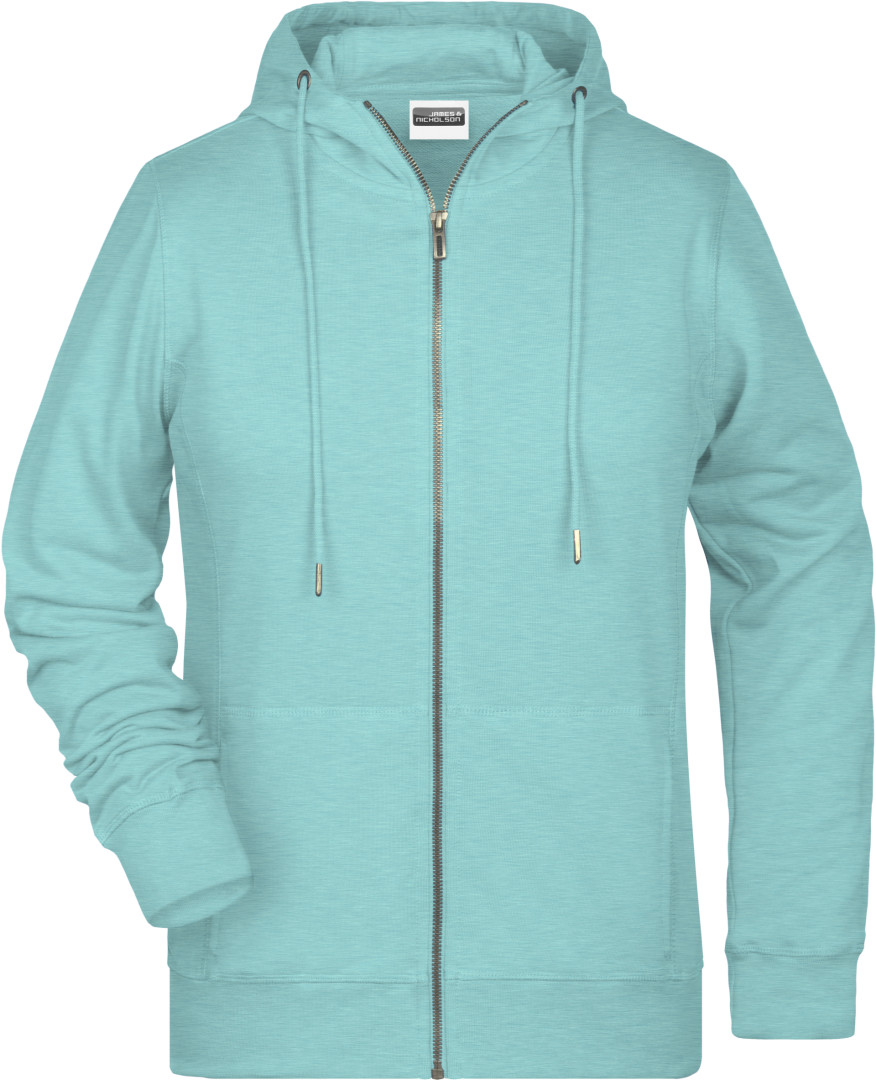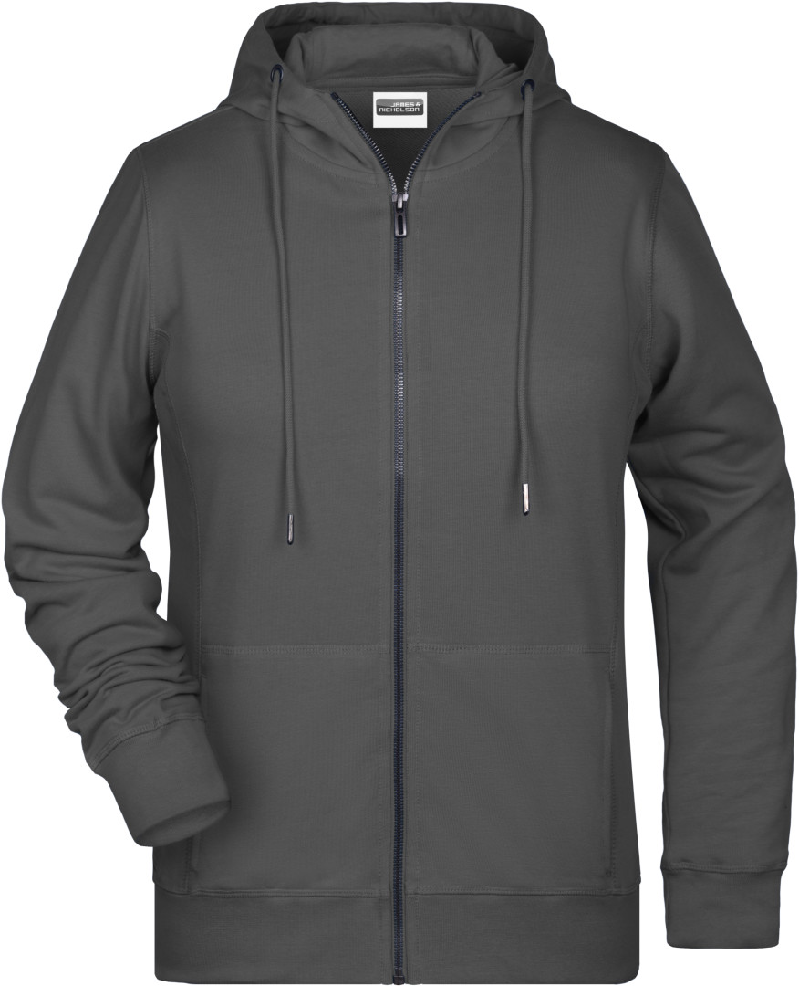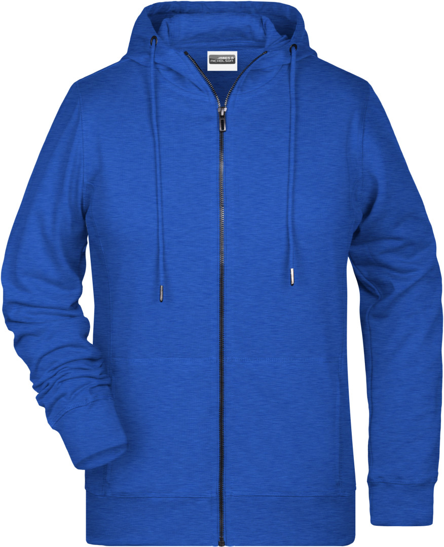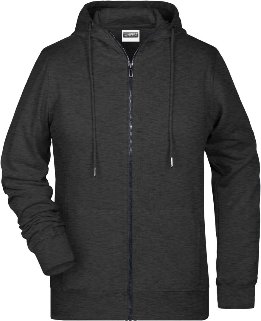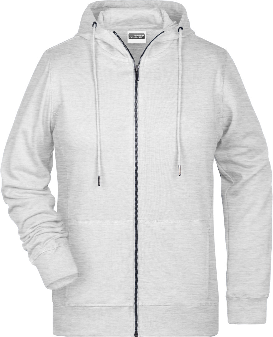 300g / m², 85% česaná Bio bavlna predpraná proti zrážaniu, 15% polyester, french terry Ľahko priliehavý strih, bočné švy v prednej časti, dvojvrstvová kapucňa so sťahovacou šnúrkou, manžety s elastanom, klokanie vrecko, YKK zips, vnútri zdrsnená, odtrhávací štítok