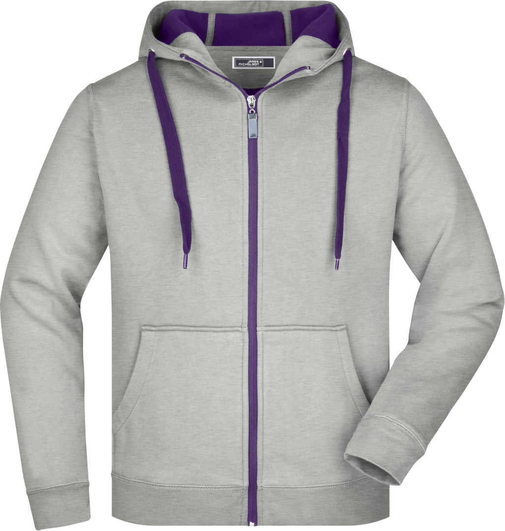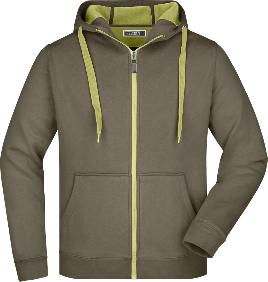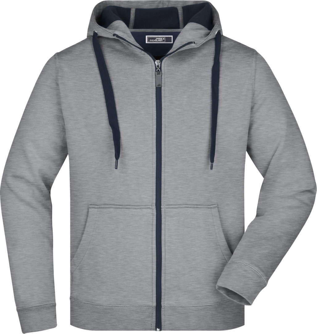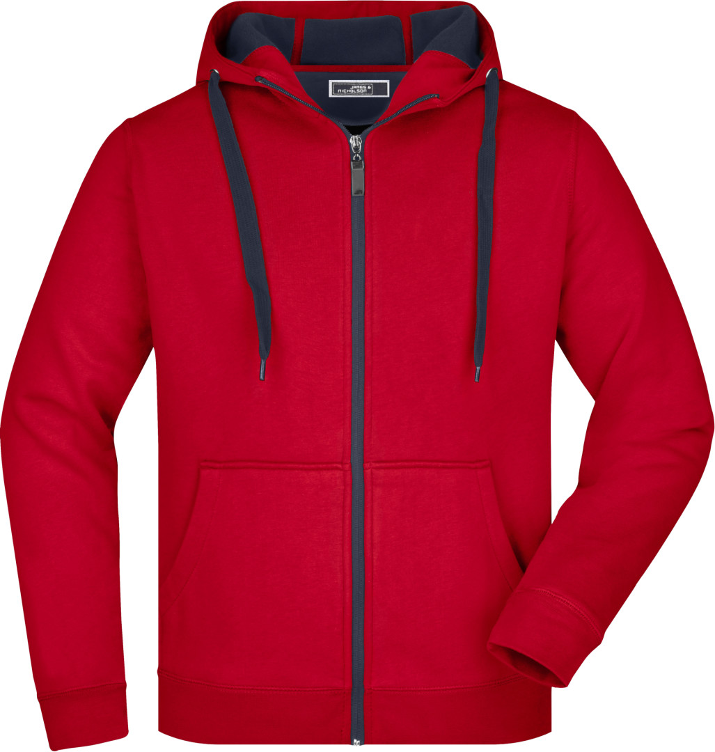 380g/m², vonkajšia vrstva: 55% polyester, 45% bavlna, vnútorná vrstva: mikrofleece, dvojvrstvová, teplá, kapucňa, sťahovacia šnúrka a zips v kontrastnej farbe, kapucňa s ochranou brady, elastické manžety a lem, vsadené rukávy, klokanie vrecko, ploché stehy