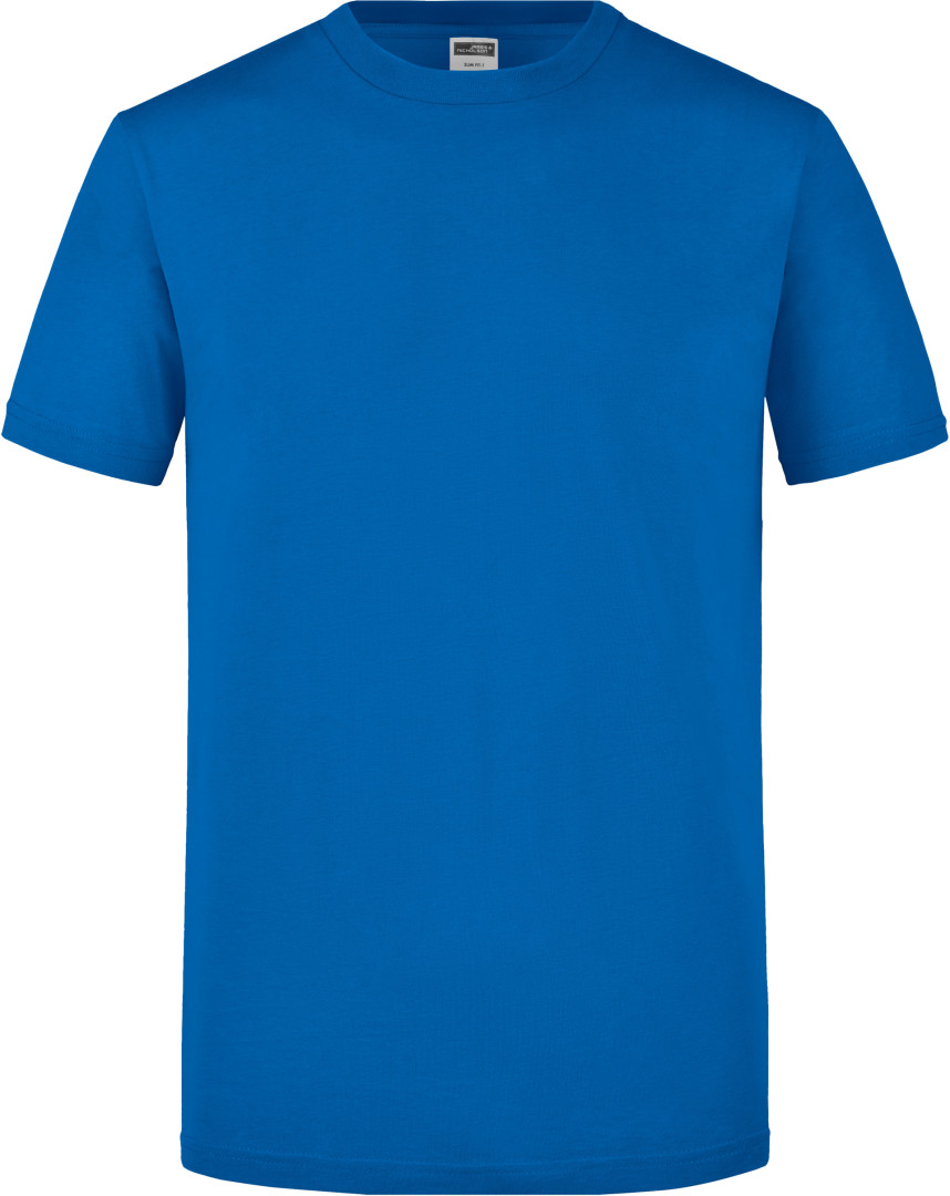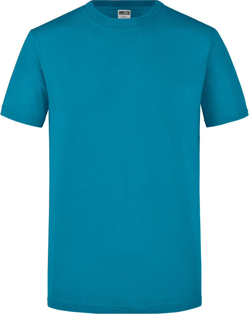 160g / m², 160g / m², 100% bavlna predpraná proti zrážaniu, česané, prstencová, single jersey Strih zvýrazňujúci postavu, optimálny stálosť tvaru, tesne priliehavé tričko s okrúhlym výstrihom, rebrovaný opasok okolo krku a goliera 1x1