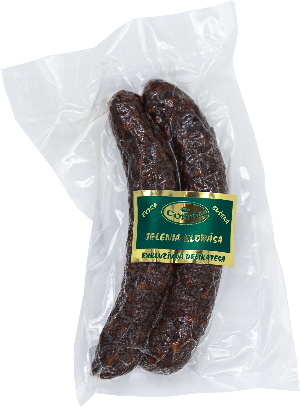 Jelenia extra sušená klobása – tradičná delikatesa zo 62 % jelenieho, 26 % bravčového a 10 % hovädzieho mäsa. Ochutená cesnakom, zázvorom a prírodnými koreninami, bez éčok, vákuovo balená. Skutočná chuť prírody zo Strážovských vrchov.