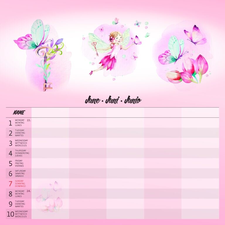 Kalendárium v šiestich jazykoch (GB, D, F, I, NL, DK)