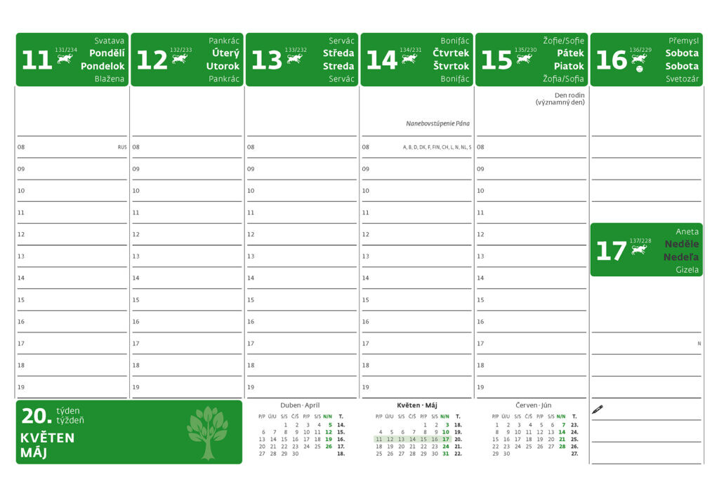 Kalendárium: české/slovenské týždenné stľpcové