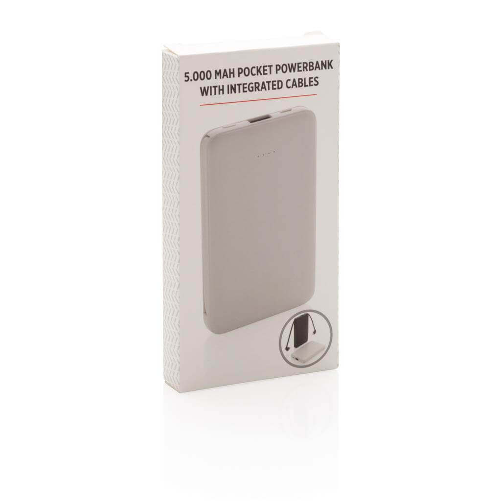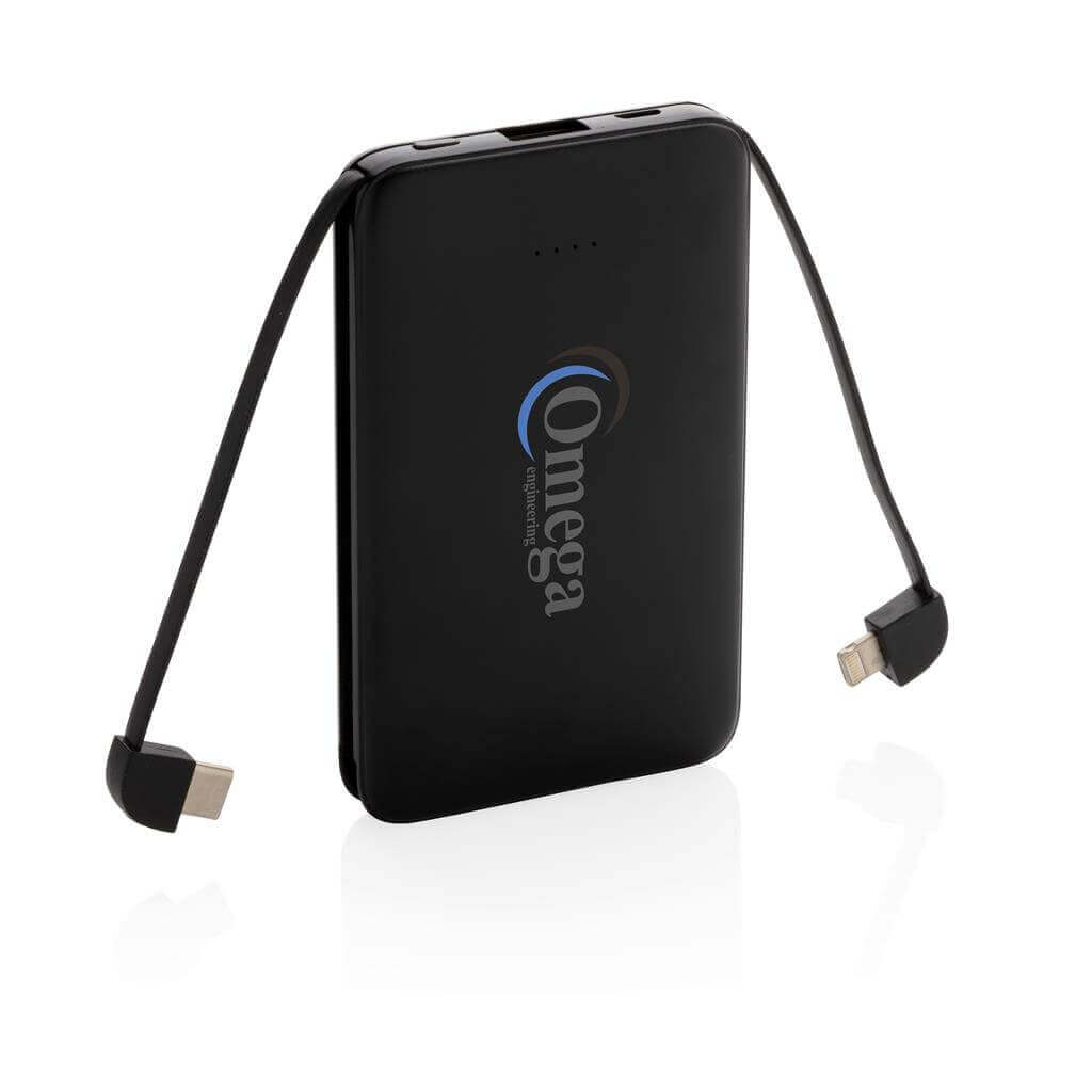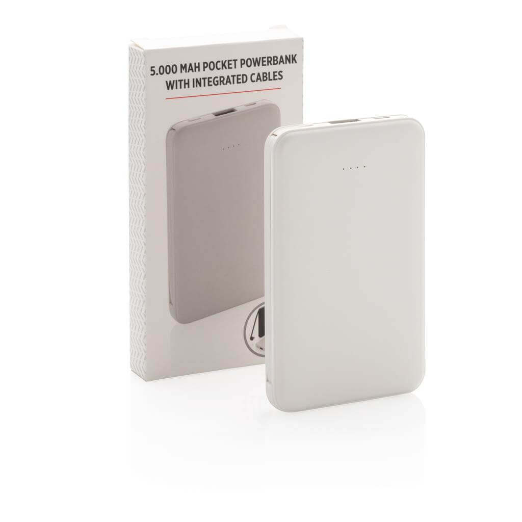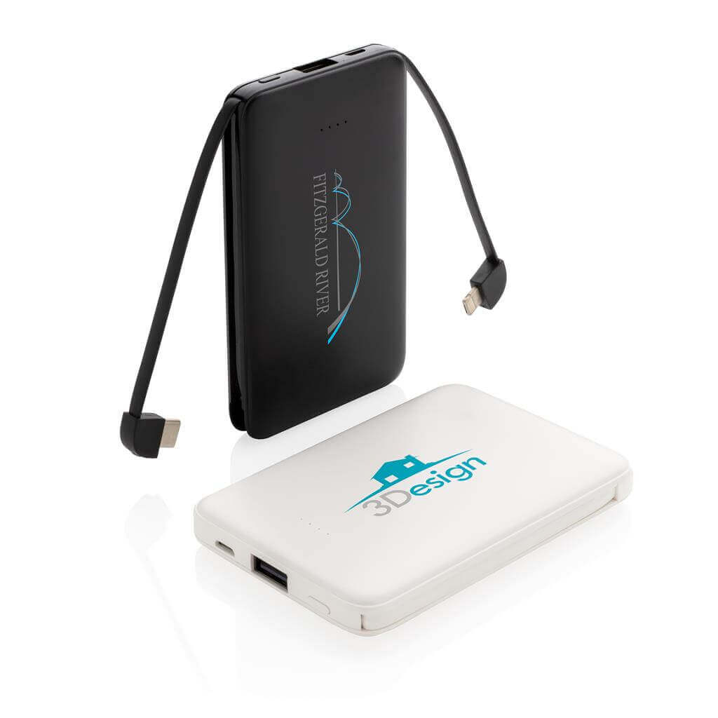 Kompaktná tenká PowerBank vyrobená z odolného ABS s integrovaným TPE káblom 3 v 1, pomocou ktorého nabijete akýkoľvek telefón na trhu. Obsahuje vysoko kvalitné lítium polymérovú batériu série A s kapacitou 5 000 mAh. Poskytuje tak dostatok energie pre plné nabitie vášho telefónu až 2x. Vrátane indikátorov stavu nabitia. Vstup 5V / 2A; Výstup 5V / 2A. 1 batériou typu Li-poly v balení.