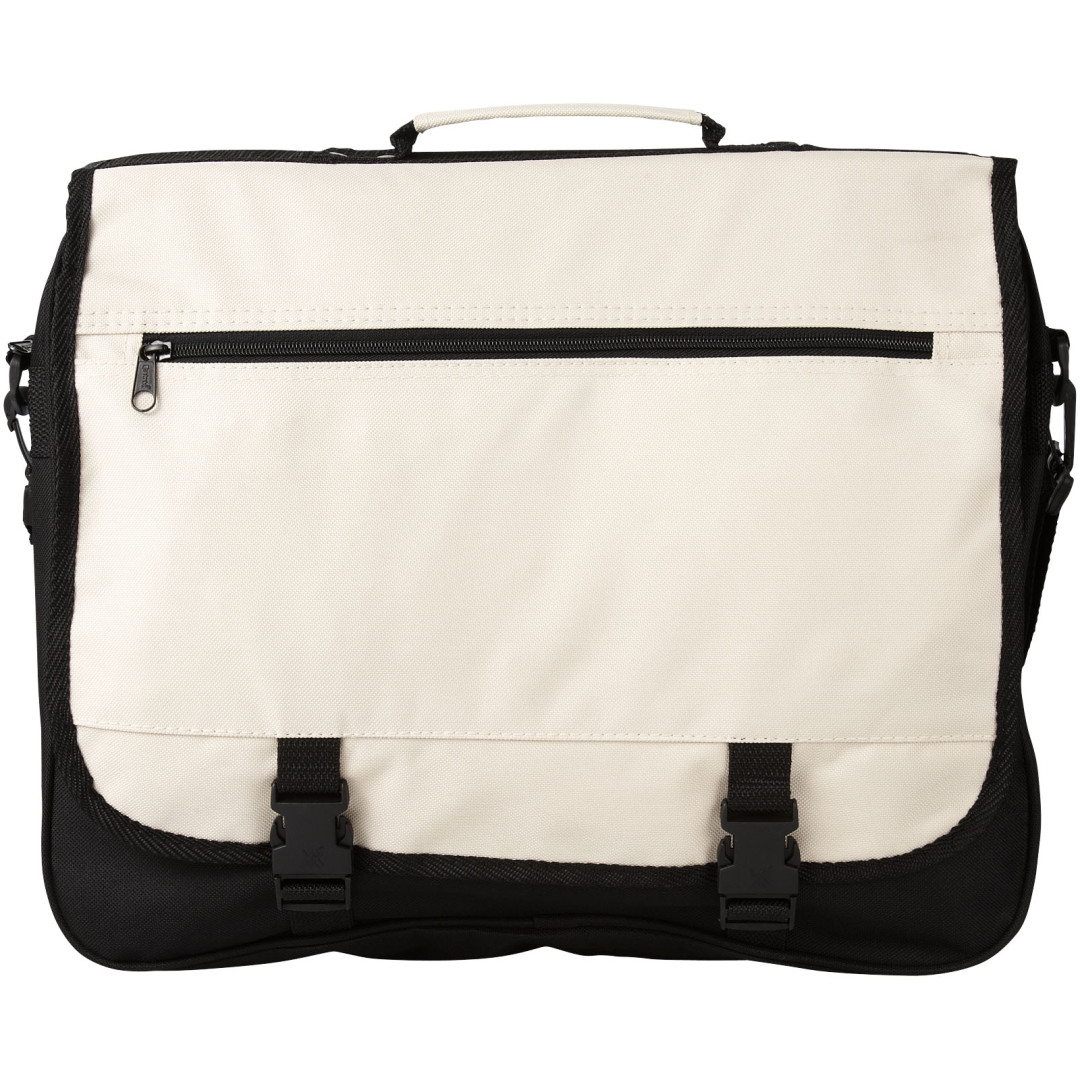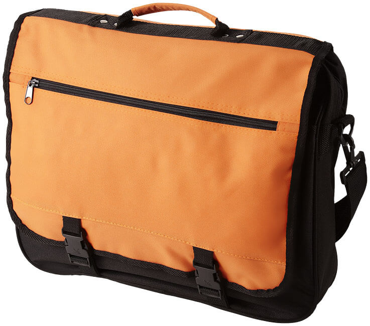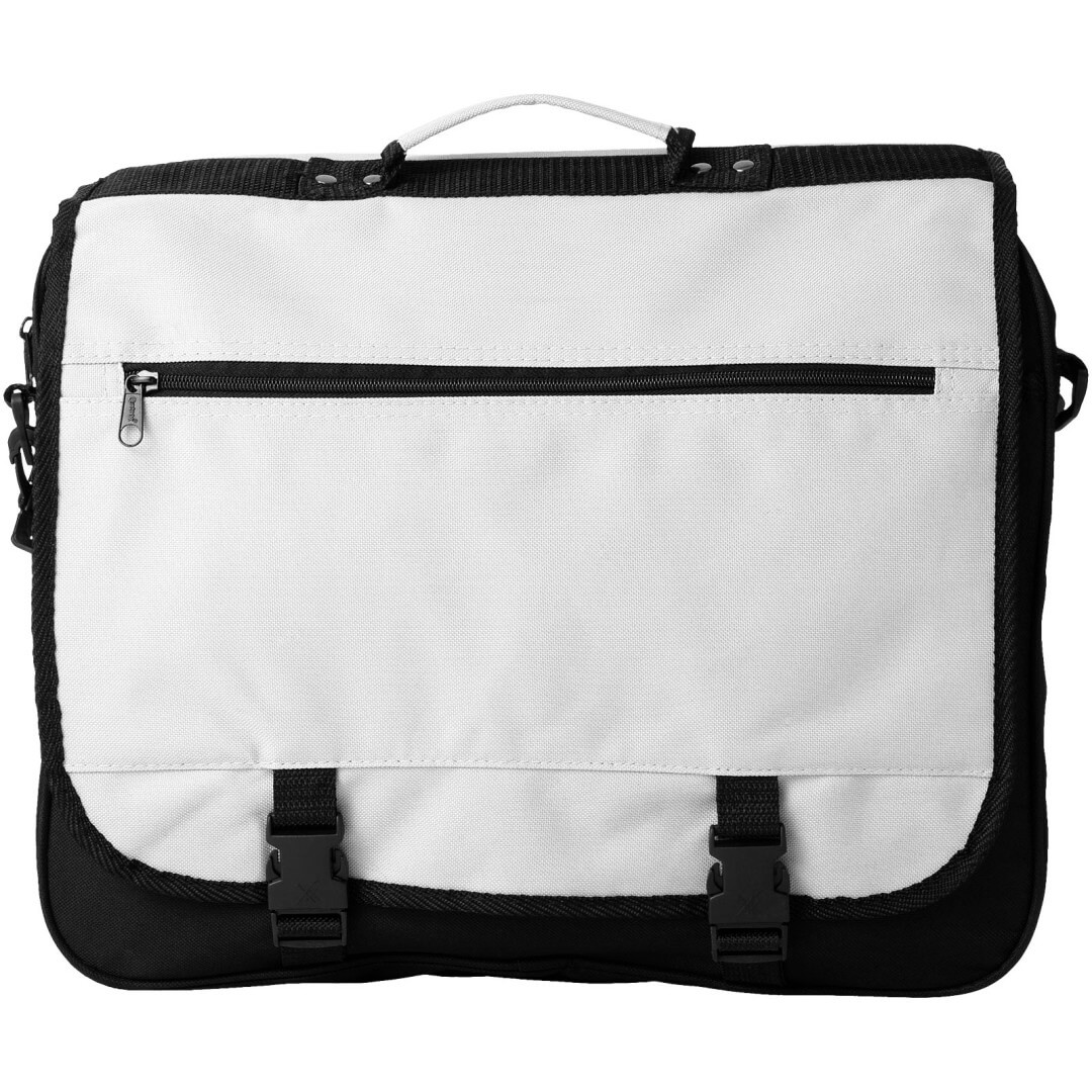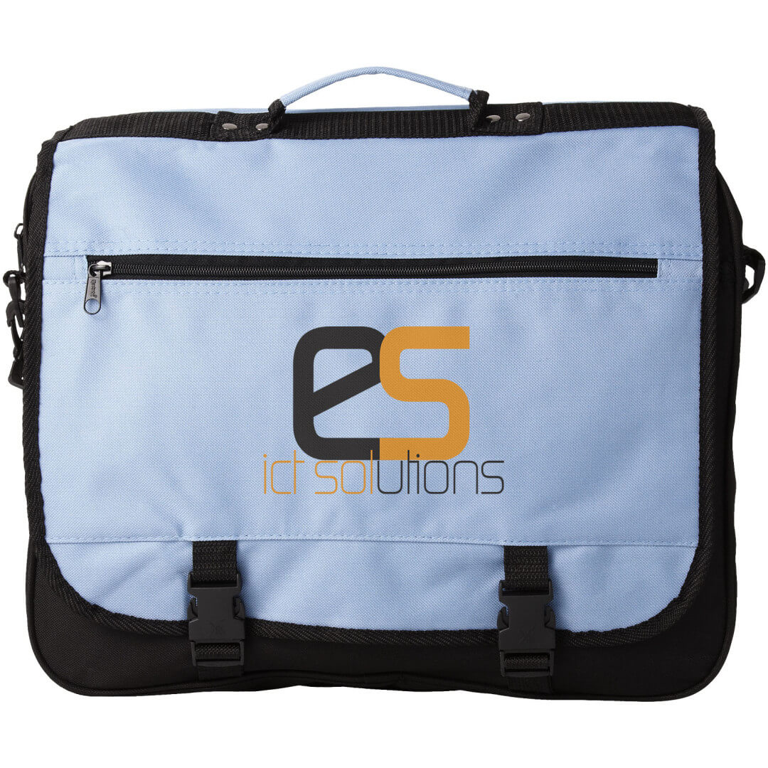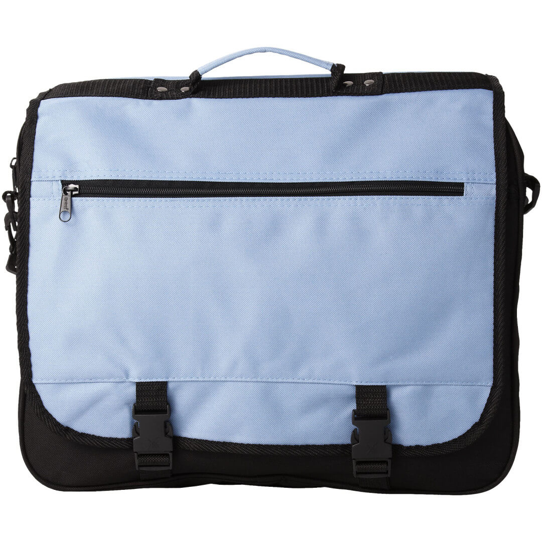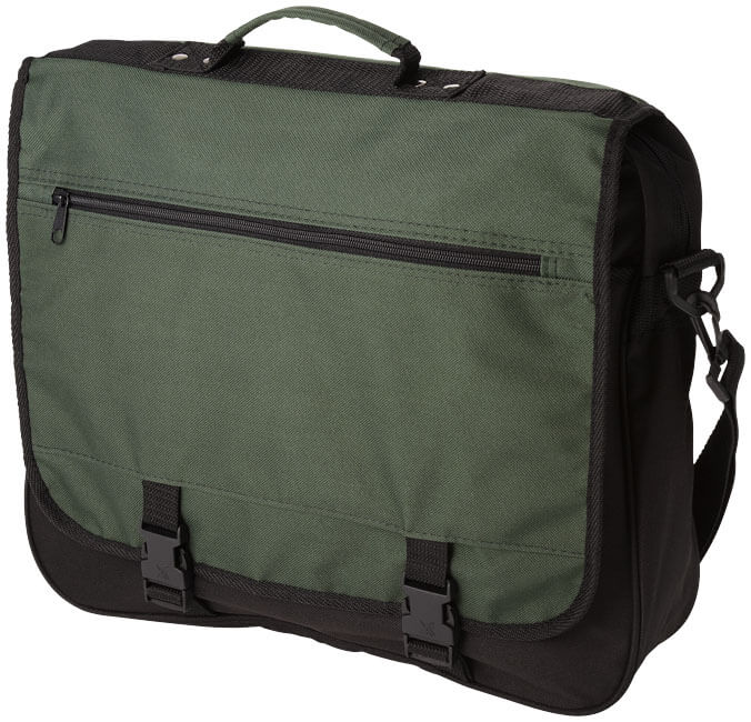 Konferenčná taška Anchorage. Taška na veľtrhy má nastaviteľný ramenný popruh, klopu na sponu, vrecko na zips v klope, hlavný priestor na zips a niekoľko otvorených kapsičiek pod chlopňou. Polyester 600D.