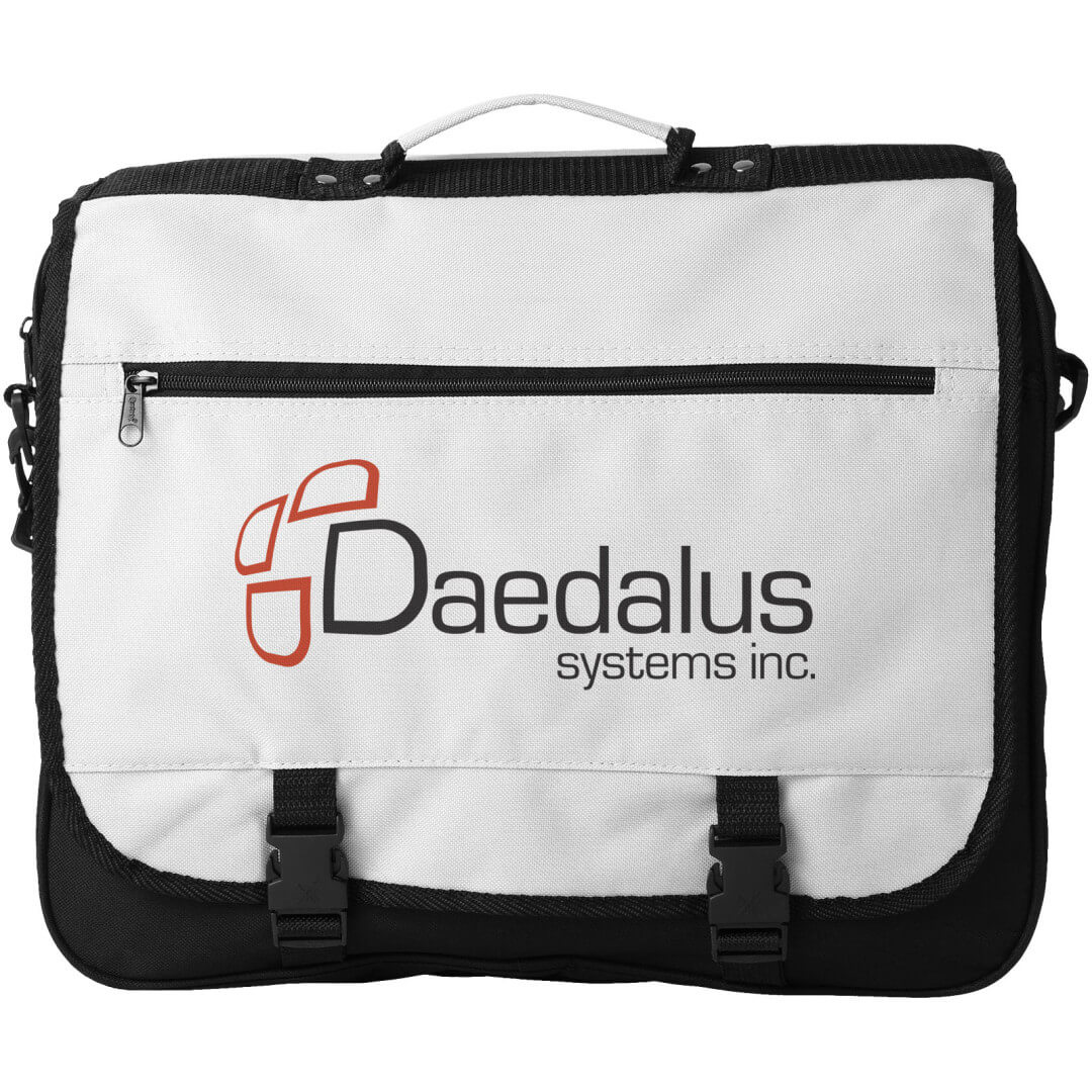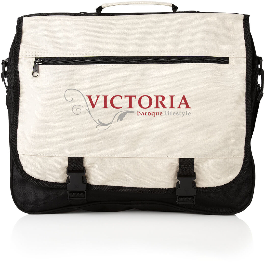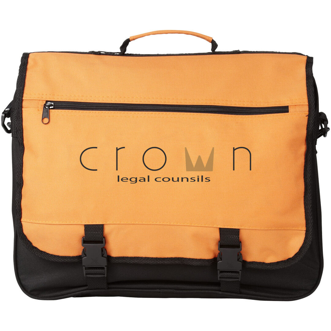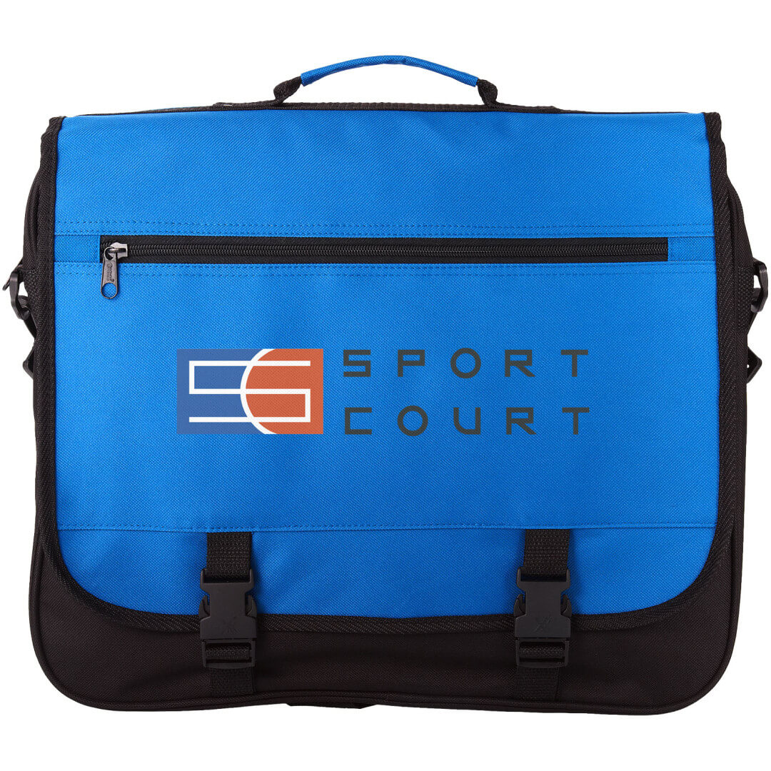 Konferenčná taška Anchorage. Taška na veľtrhy má nastaviteľný ramenný popruh, klopu na sponu, vrecko na zips v klope, hlavný priestor na zips a niekoľko otvorených kapsičiek pod chlopňou. Polyester 600D.
