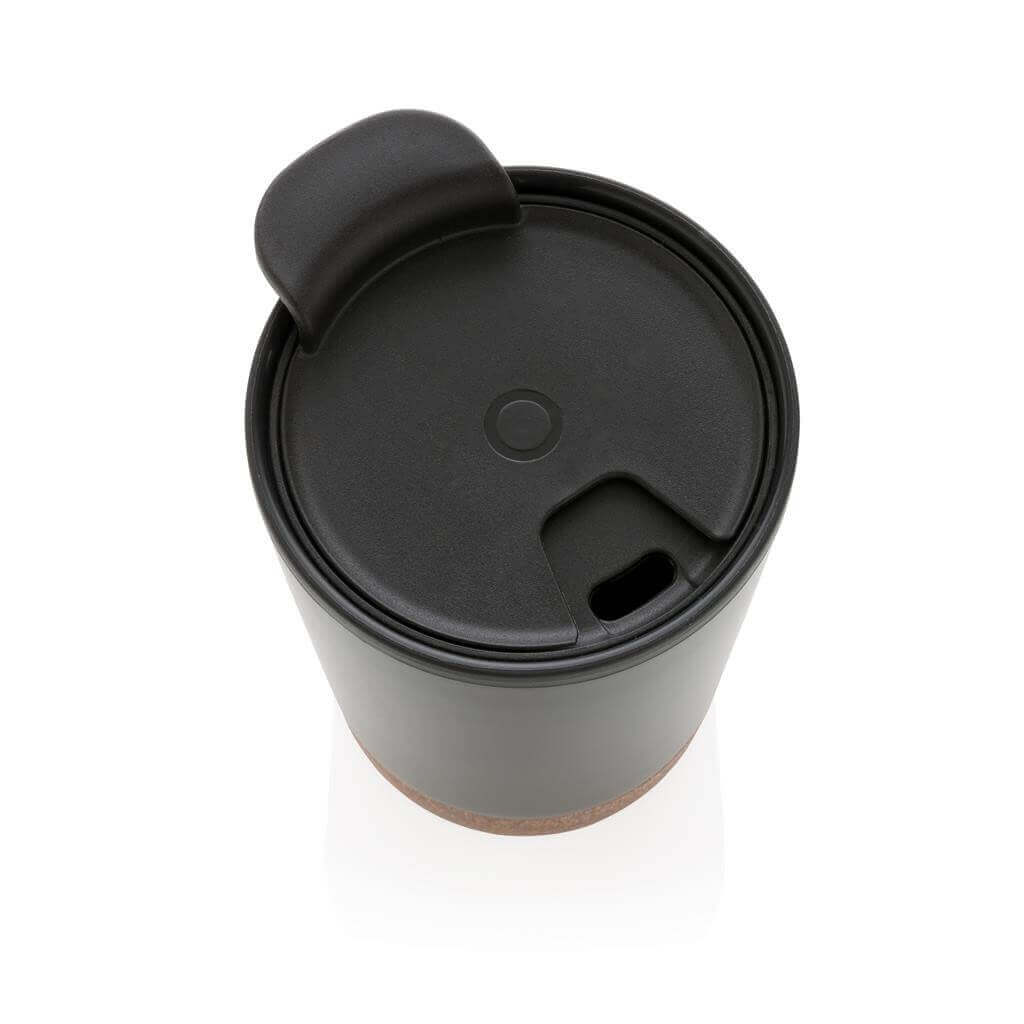 Štýlový termohrnček s dvojitou stenou a moderným korkovým detailom. Vyrobený z GRS recyklovaných materiálov, vnútorná časť vyrobená z GRS reyklovaného PP plastu. GRS (Global Recycle Standard) je globálny štandard, ktorý umožňuje overiť použitie recyklovaného materiálu v produkte naprieč celým dodávateľským reťazcom. Celkový podiel recyklátu podľa váhy produktu: 52 %. Nápoje uchová až 6 hodín horúce a 3 hodiny studené. Objem: 300 ml. Bez BPA. Balené v FSC® kraftovej darčekovej krabičke.