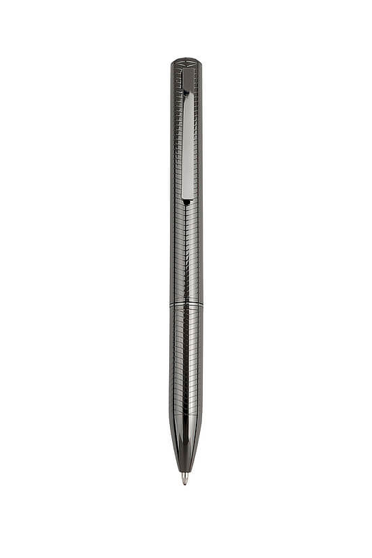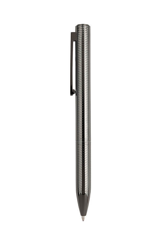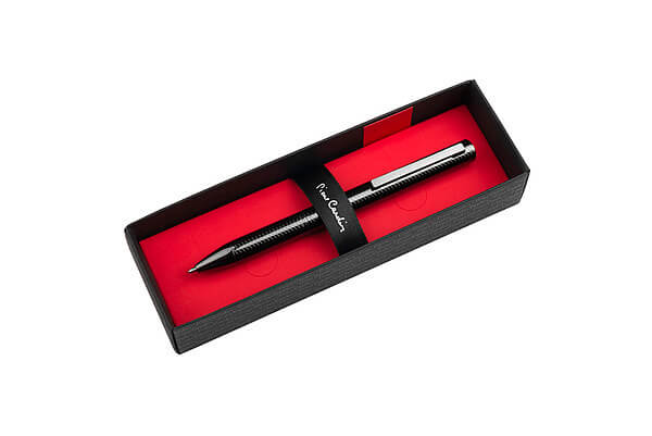 Luxusné kovové guľôčkové pero Pierre Cardin s otočným mechanizmom, ktorého telo je po celej dĺžke povrchu zdobené elegantným rytím. Obsahuje kvalitnú náplň v modrej farbe s hrotom 1 mm a je dodávané s náhradnou čiernou náplňou. Balené v luxusnej krabičke Pierre Cardin, dodávané s certifikátom pravosti. Rozmery: guľôčkové pero 1,1 × 13,9 cm, balenie 17,5 × 5,5 × 3,5 cm.