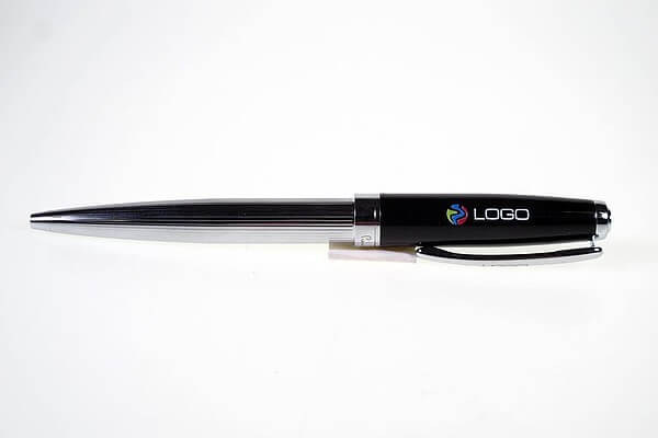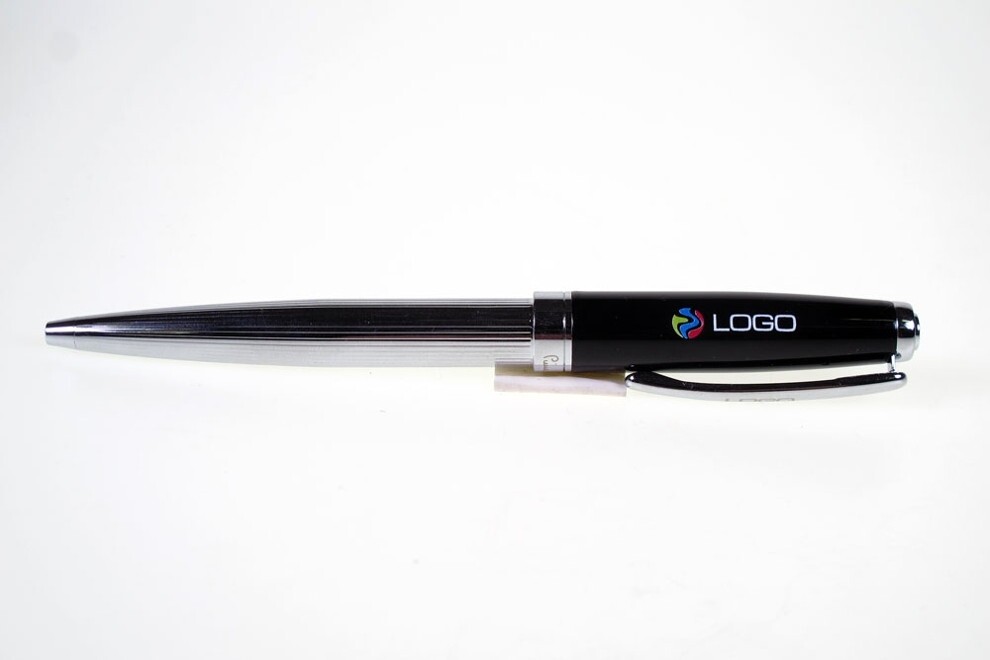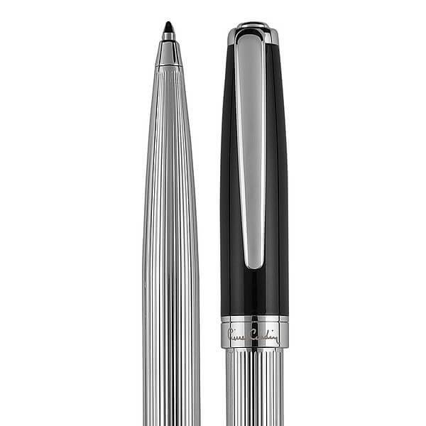Luxusné kovové guľôčkové pero v masívnom dizajne kombinácia striebornej a čiernej farby s jemným rytím na tele. Obsahuje kvalitnú modrú náplň s hrotom 1 mm, je dodávaný s náhradnou čiernou náplňou. Balené v luxusnej krabičke Pierre Cardin, dodávané s certifikátom pravosti. Rozmery: guľôčkové pero 1 × 13,7 cm, balenie 17,5 × 6,7 × 3,5 cm.