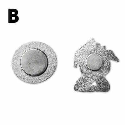 Kovový odznak z nehrdzavejúcej ocele s plnofarebnou potlačou a motýľovou spojkou. Môže byť dodané s papierovým obojstranne potlačeným reklamným papierikom. Potlač je realizovaná s epoxy (živicovou) nálepkou. Tvar je plne prispôsobiteľný.