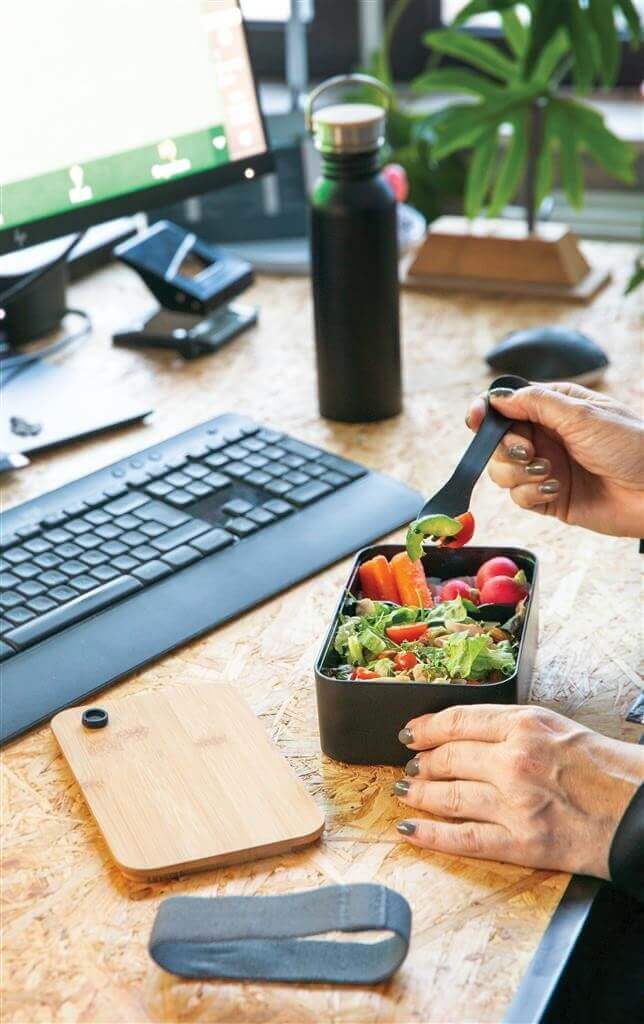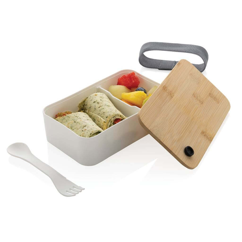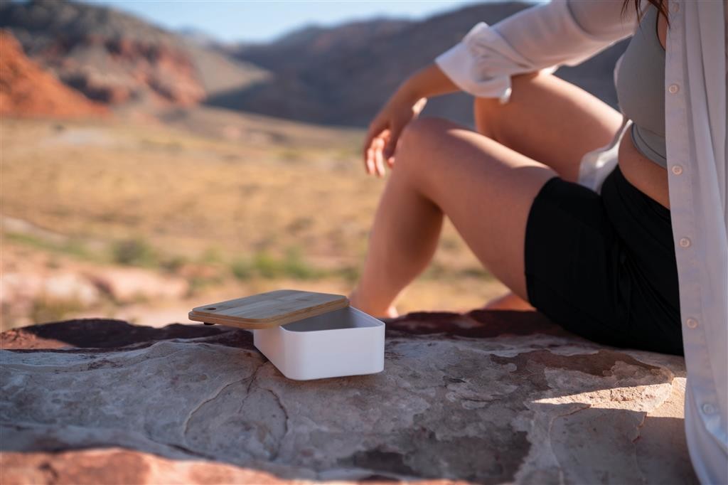 Praktická krabička na jedlo na každodenné použitie. Krabička je vyrobená z RCS recyklovaného PP plastu. RCS (Recycled Claim Standard) je globálny štandard, ktorý umožňuje overiť použitie recyklovaného materiálu v produkte naprieč celým dodávateľským reťazcom. Celkový podiel recyklátu podľa váhy produktu: 44 %. Veko vyrobené z prírodného bambusu. Krabička (bez veka) je vhodná do umývačky riadu aj mikrovlnnej rúry. Vrátane elastickej gumičky a príboru 3 v 1. Objem: 1,4 l. Balené v FSC® kraftovej darčekovej krabičke.