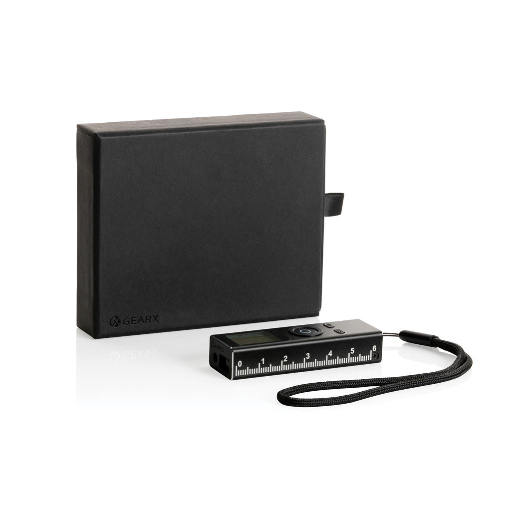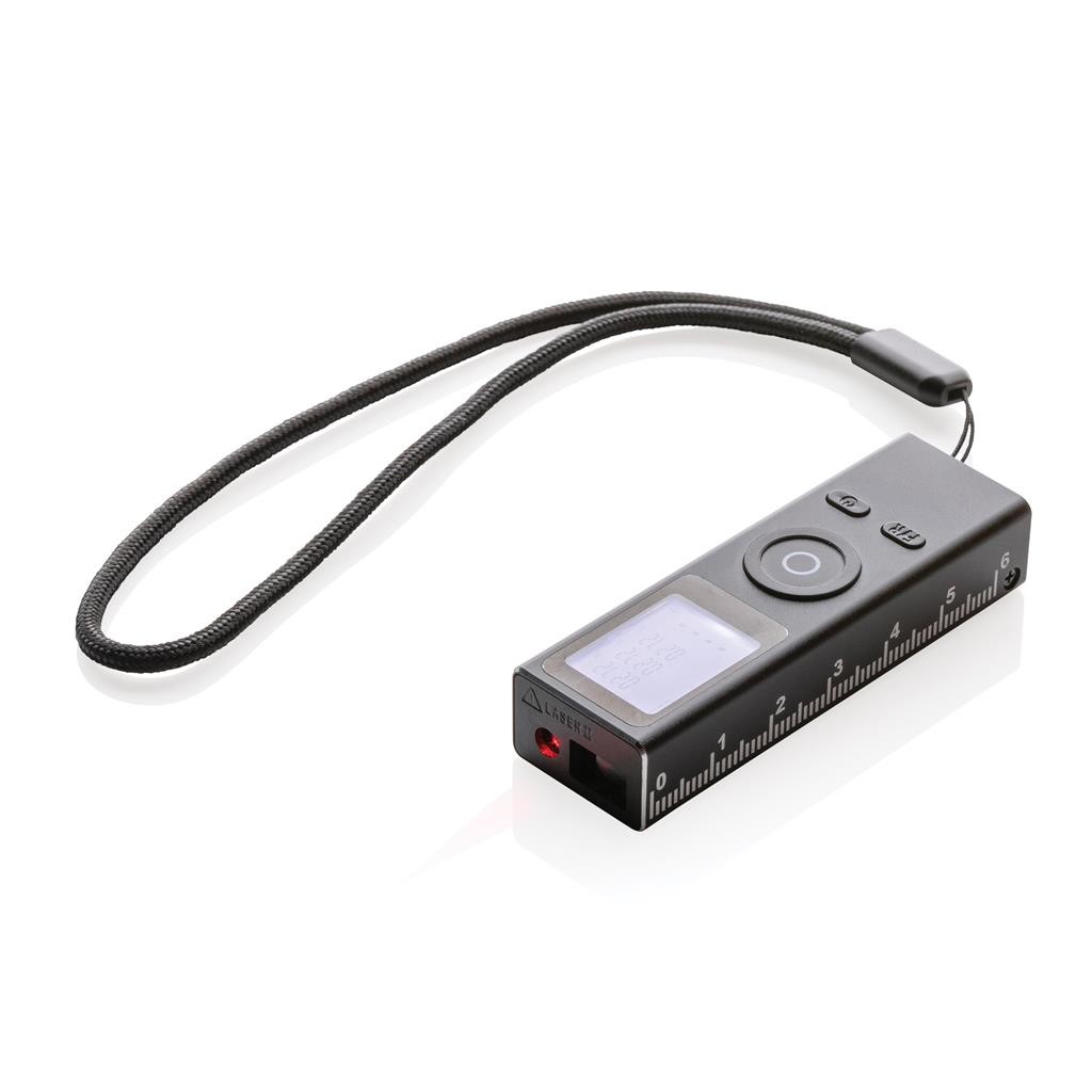 Opakovane dobíjateľný laserový meter s dosahom 30m. Trieda 2. Reakčná doba 0,1 sekundy. Červený odtieň lasera. Možnosť merať v metroch, stopách, palcoch. Režimy: vzdialenosť, štvorec, objem, pravé uhly. Zabudovanú 250 mAh batériu možno jednoducho dobíjať cez USB. Zvuková signalizácia zmerania. Vyrobené z RCS recyklovaného hliníka. RCS (Recycled Claim Standard) je globálny štandard, ktorý umožňuje overiť použitie recyklovaného materiálu v produkte naprieč celým dodávateľským reťazcom. Podiel použitého recyklovaného materiálu vzhľadom na celkovú váhu produktu: 22%. Vrátane USB nabíjacieho kábla z RCS recyklovaného TPE. 1 batéria typu Li-ion súčasťou balenia.