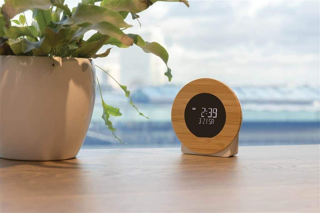 Stolní hodiny s LCD displejem zobrazujícím čas a budík. Vyrobeno z RCS recyklovaného ABS plastu a FSC® bambusu. RCS (Recycled Claim Standard) je globální standard, který umožňuje ověřit použití recyklovaného materiálu v produktu napříč celým dodavatelským řetězcem. Celkový podíl recyklátu dle váhy produktu: 69 %. Včetně 100 cm USB C nabíjecího kabelu z RCS recyklovaného TPE. Baleno v FSC® dárkové krabičce.