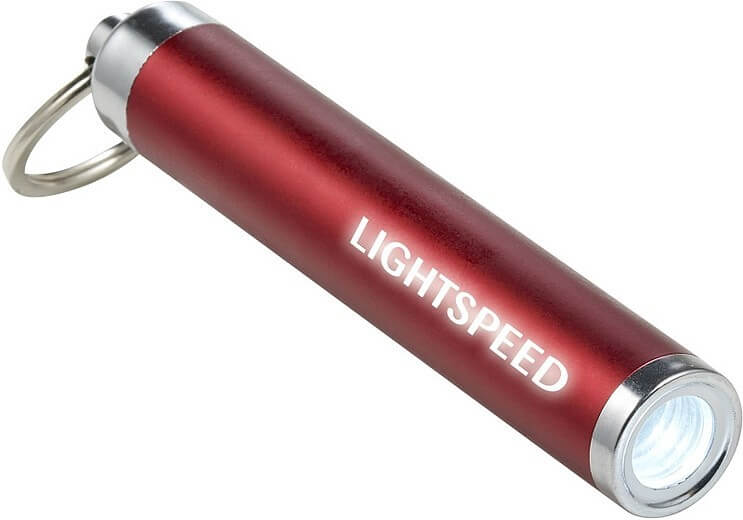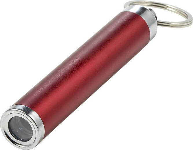 Vreckové LED svietidlo s krúžkom na kľúče. Lesklý kryt je špeciálne navrhnutý pre laserové gravírovanie; pri zapnutí baterky sa potlač rozsvieti. Vrátane batérií.