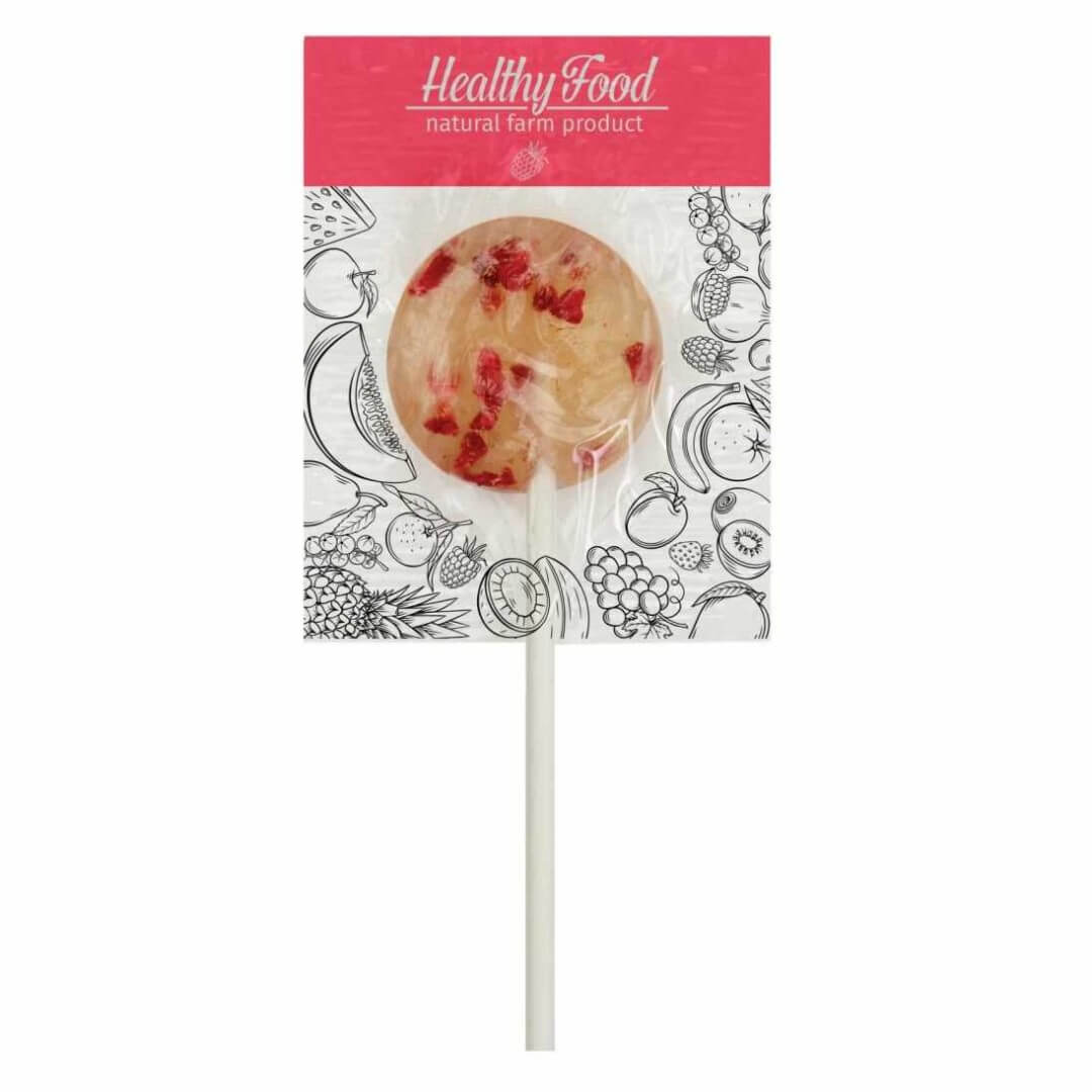 Lízatko s potlačeným obalom, v tvare kruhu alebo gule, vám umožňuje pripraviť plnofarebnú grafiku, ktorá zaujme každého. Lízatka sú vegánske v rôznych príchutiach na 100% biologicky odbúrateľnej tyčinke s 100% biologicky odbúrateľným obalom a fóliou. Od výroby majú spotrebu 12 mesiacov.