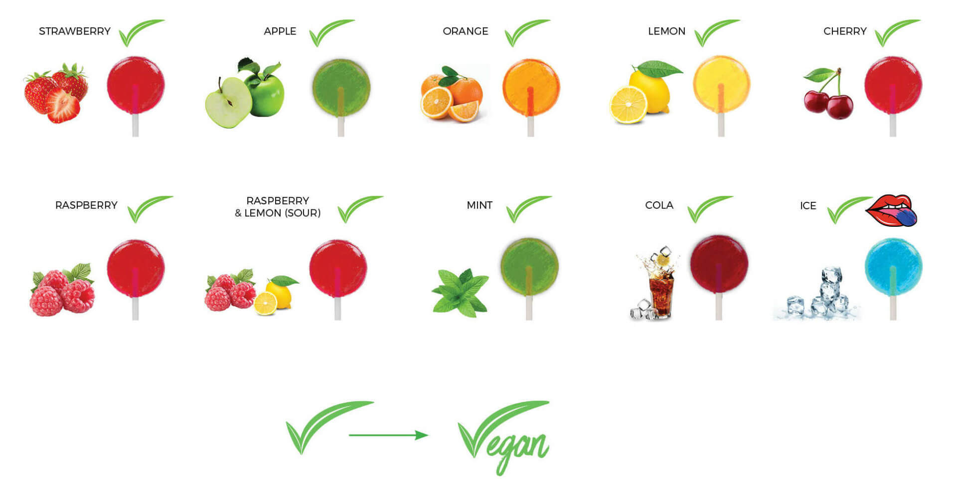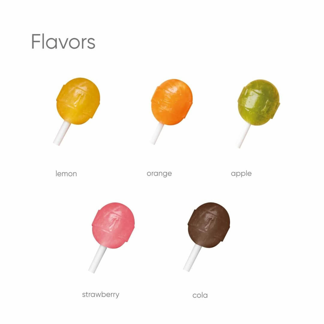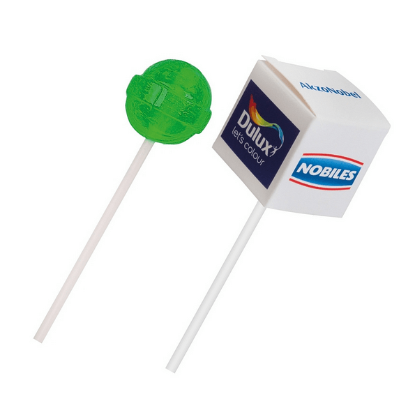 Lízatko s potlačenou krabičkou, v tvare kruhu alebo gule, vám umožňuje pripraviť plnofarebnú grafiku, ktorá zaujme každého. Lízatka sú vegánske v rôznych príchutiach na 100% biologicky odbúrateľnej tyčinke s 100% biologicky odbúrateľným obalom a fóliou. Od výroby majú spotrebu 12 mesiacov.