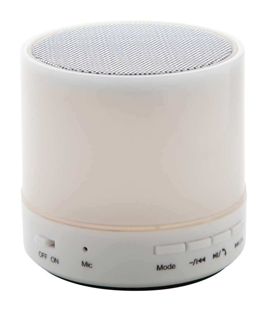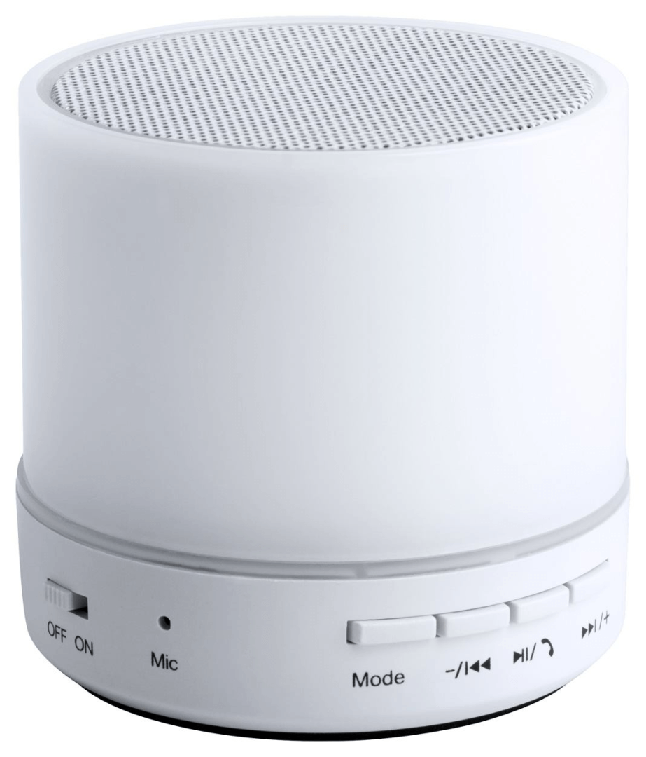 Bluetooth reproduktor v plastovom obale s viacfarebným LED svetlom. S funkciou handsfree volaní, FM rádiom a vstavanou nabíjateľnou batériou. Vr. USB nabíjacieho kábla.