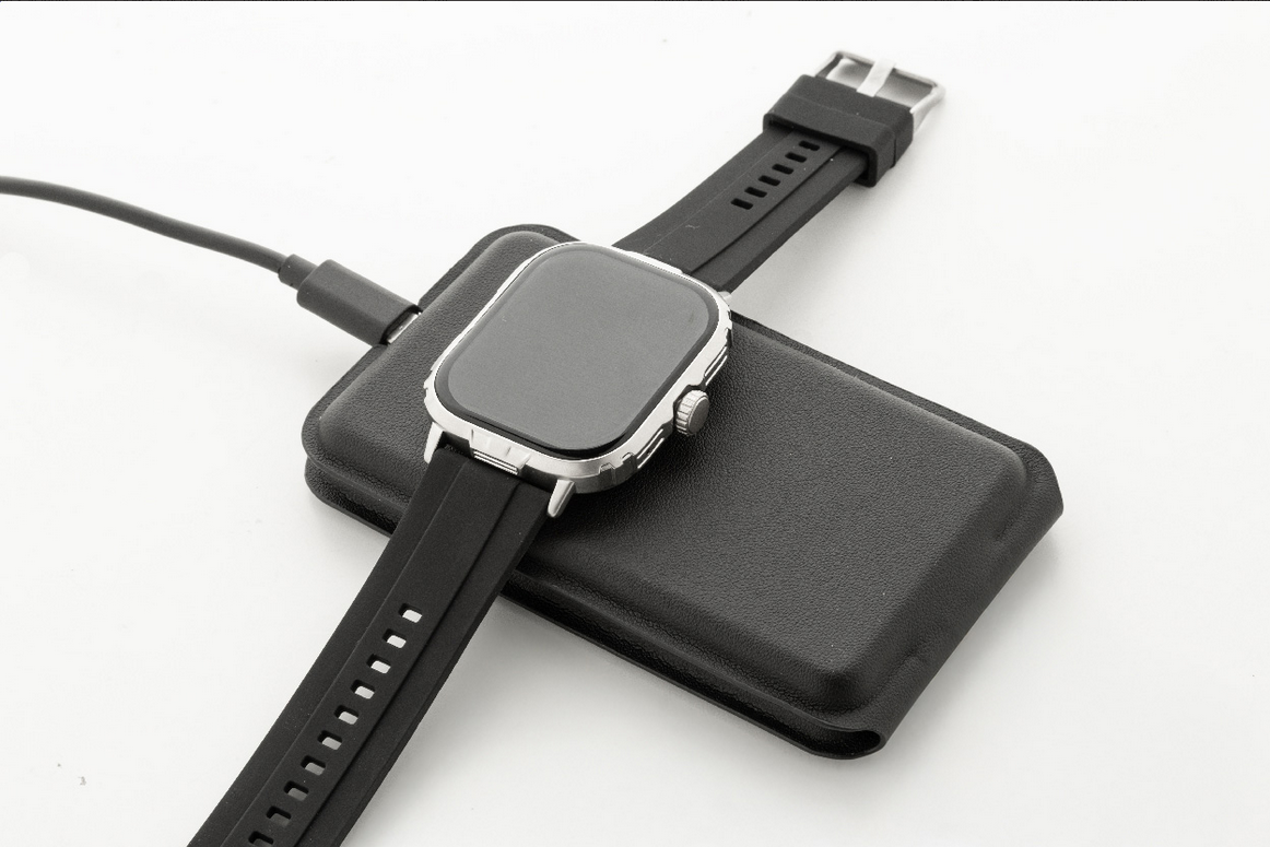 Luxusný skladací držiak na mobilný telefón a bezdrôtová nabíjacia sada z recyklovanej PU kože. S magnetickou bezdrôtovou rýchlonabíjačkou (15 W), bezdrôtovou nabíjačkou (5 W) pre slúchadlá (iba Apple®) a bezdrôtovou nabíjačkou (2,5 W) pre inteligentné hodinky (Apple® a Samsung®). Vrátane samolepiaceho kovového krúžku na použitie magnetickej funkcie na akomkoľvek bezdrôtovo nabíjacom zariadení. Kompatibilný s iPhone® 12 alebo novším. Vrátane USB nabíjacieho kábla. ezdrôtové pripojenie: Áno. USB kábel je súčasťou balenia: Áno