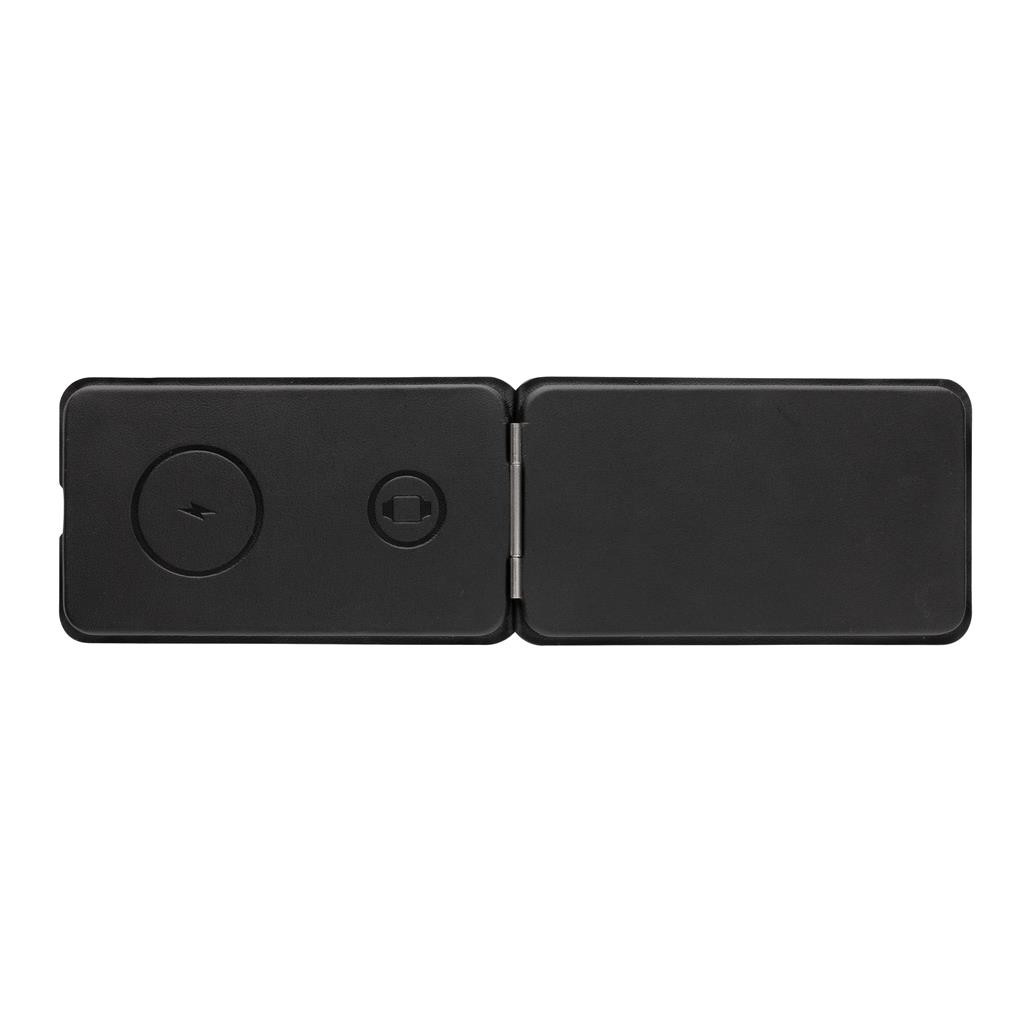 Luxusná skladacia bezdrôtová nabíjačka 3v1. Je vybavená magnetickou 15W bezdrôtovou nabíjačkou pre telefón, 5W pre menšie zariadenia (napr. nabíjacia krabička TWS slúchadiel), 2,5W pre hodinky Apple watch. Vyrobené z RCS recyklovaného PU. RCS (Recycled Claim Standard) je globálny štandard, ktorý umožňuje overiť použitie recyklovaného materiálu v produkte naprieč celým dodávateľským reťazcom. Celkový podiel recyklátu podľa váhy produktu: 5%. Vrátane 120cm nabíjacieho kábla z recyklovaného TPE. Výrobok je kompletne bez PVC. Balené v FSC kraftovej darčekovej krabičke. Vstup: 9V/3A pre optimálne použitie. Výstup: telefón: 9V/1,1A, 9V/1,67A (15W); slúchadlá: 5V/1A (5W); hodinky: 5V/0,5A (2,5W).