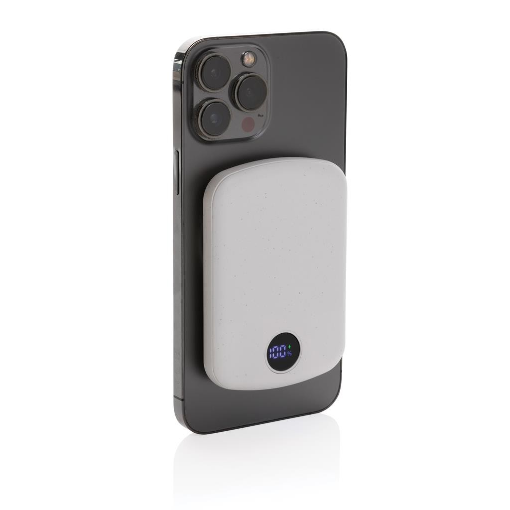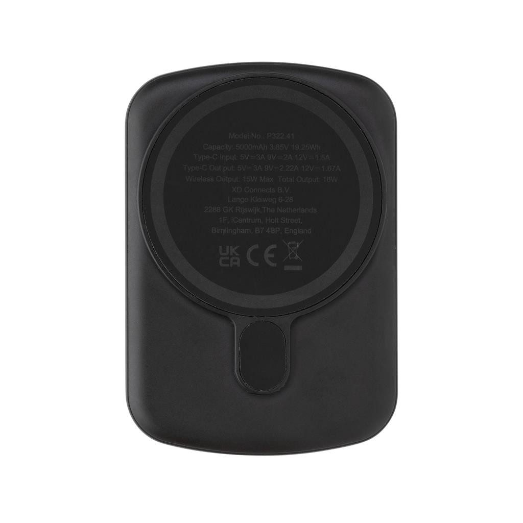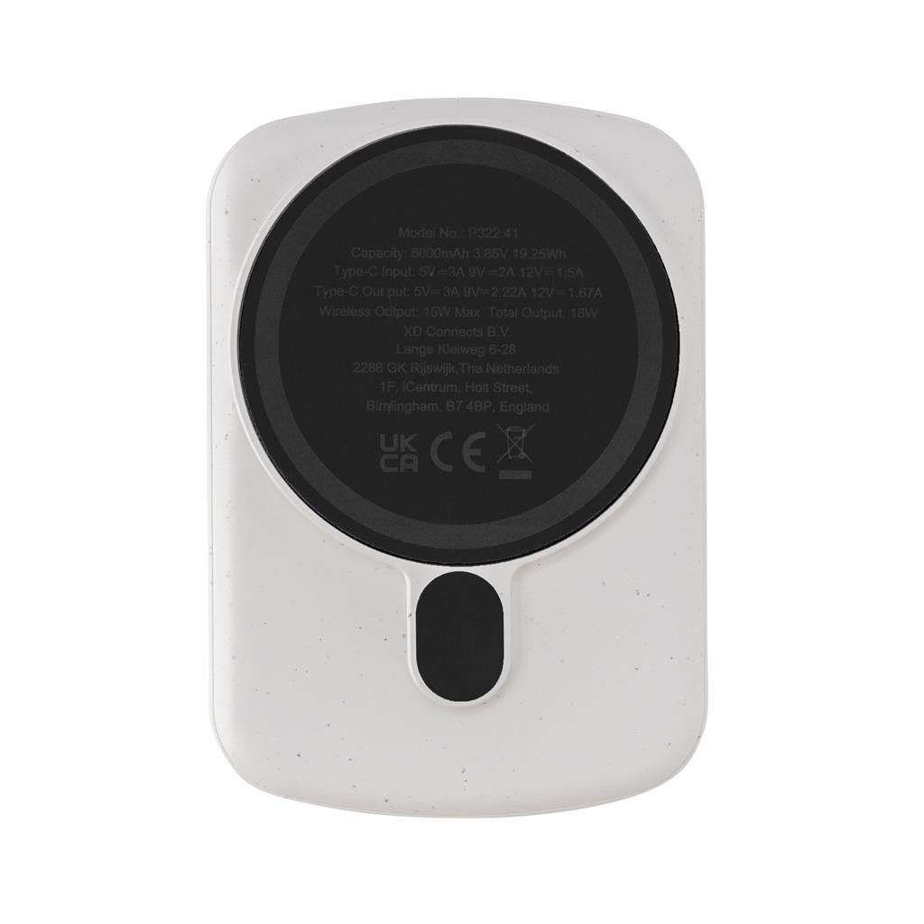 Vrecková powerbanka 5 000 mAh s magnetickým bezdrôtovým nabíjaním 15 W. Vyrobená z recyklovaného ABS plastu s RCS certifikáciou. RCS (Recycled Claim Standard) je globálny štandard, ktorý umožňuje overiť použitie recyklovaného materiálu v produkte naprieč celým dodávateľským reťazcom. Celkový podiel recyklátu podľa váhy produktu: 21 %. Kvalitné lítium polymérová batéria radu A s kapacitou 5 000 mAh. LED displej informujúci o presnej úrovni nabitia batérie. USB vstup C: 5V/3A, 9V/2A, 12V/1,5A. USB C výstup: 5V/2,4A, 9V/2,22A, 12V/1,67A, bezdrôtový výstup: 15 W. Vrátane nabíjacieho kábla z recyklovaného TPE. Výrobok je kompletne bez PVC. Balené v FSC kraftovej darčekovej krabičke. 1 batérií typu Li-poly súčasťou balenia.