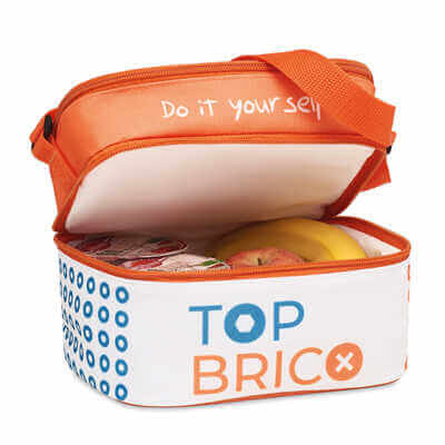 2-vrstvová obedová/chladiaca taška s popruhom cez rameno v malej veľkosti. 600D polyester so 4 mm EPE penou a bielou PEVA. Tašku možno plnofarbe potlačiť po celom jej obvode. Vybrané časti tašky možno farebne odlíšiť, na výber je 18 farebných Panthone odtieňov. Rozmery: 20x15,5x15 cm. Samostatne balené. Na tašku je možné našiť tkaný štítok za príplatok.