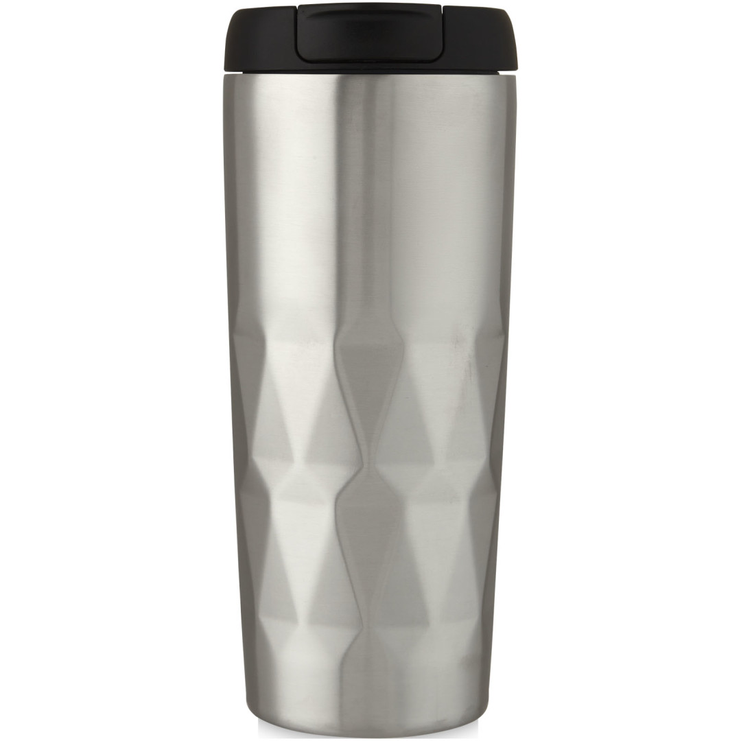 Dvojstenný medený hrnček s tepelnou izoláciou a skrutkovacím tesniacim viečkom so zložitým geometrickým dizajnom. Izolačná nerezová oceľ 18/8 udrží nápoje horúce alebo studené po dobu niekoľkých hodín. Bez BPA a testované a schválené podľa nemeckej legislatívy pre bezpečnosť potravín (LFGB), testované na obsah ftalátov podľa predpisov REACH. Objem je 450 ml. Neodporúča sa umývať v umývačke. Dodáva sa v darčekovej krabičke z recyklovanej lepenky.