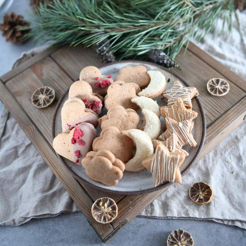 Zloženie: pšeničná múka, cukor, rastlinný tuk, ovocná náplň jablkovo-marhuľová (cukor, jablká (35% hm.), marhule (20% hm.), regulátor kyslosti: kyselina citrónová, antioxidant: kyselina askorbová, želírujúca látka: pektín, farbivá: beta karotén a paprikový extrakt,aróma), perníkové korenie (mletá škorica, mletý koriander, mletý badián,mleté nové korenie,mletý klinček, mletý aníz, mletý muškátový oriešok, mletý muškátový kvet , mletý fenikel), čokoláda (cukor, sušené mlieko, kakaové maslo, vanilka, emulgátor: sójový lecitín, laktóza), mandľová múka, vajcia, med, kokos, sušené maliny, sóda bikarbóna