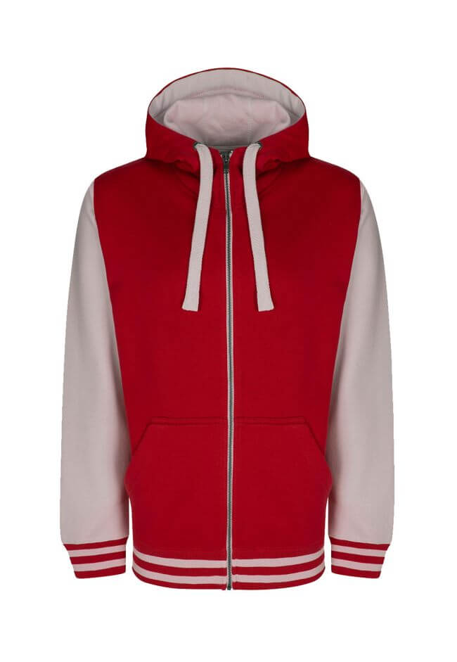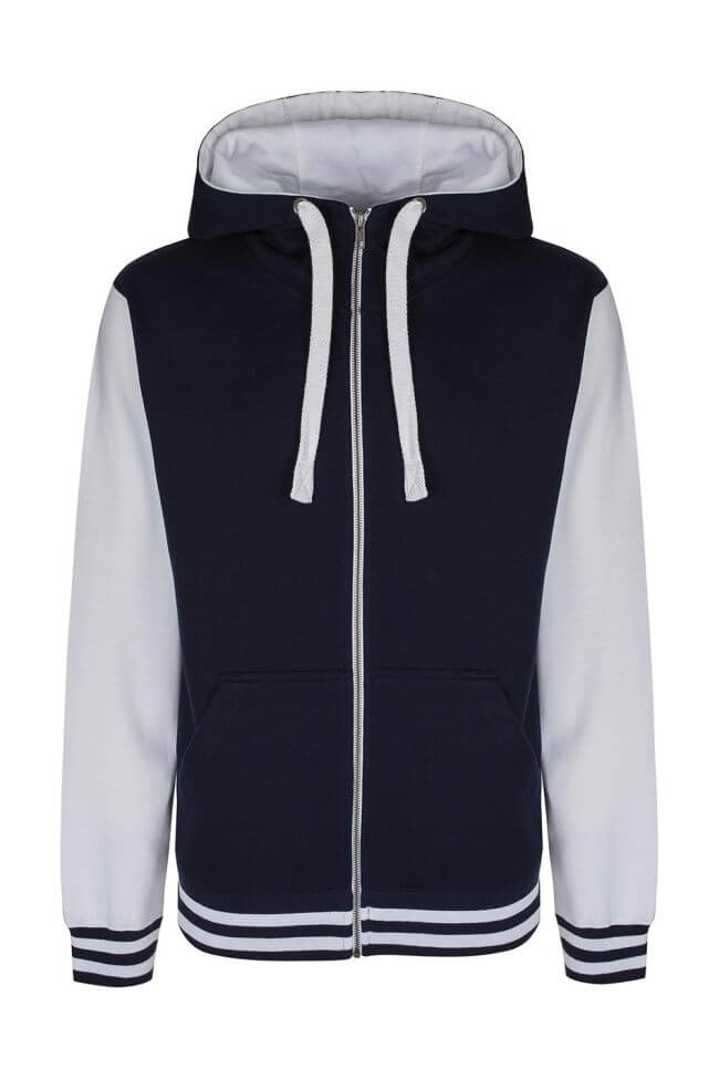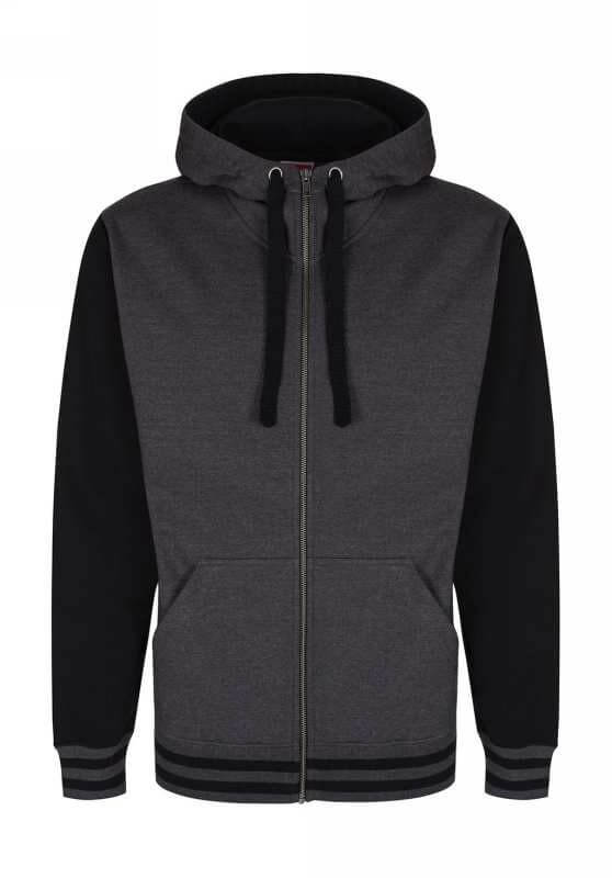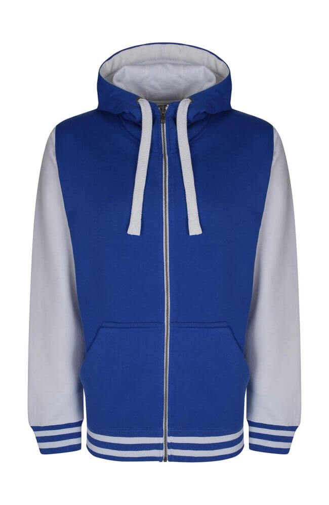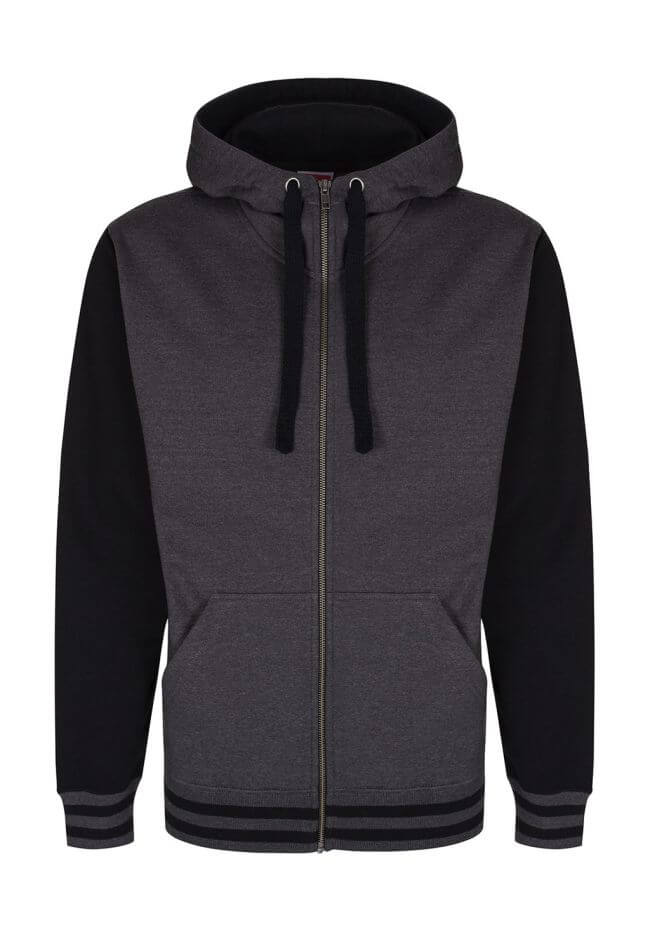 ·300 g/m2 ·80% bavlna, 20% polyester ·kapucňa z troch dielov s podšívkou v kontrastnej farbe s robustnou sťahovacou šnúrkou ·spevňujúca páska na krku v kontrastnej farbe ·pútko na zavesenie v kontrastnej farbe ·kontrastné vsadené rukávy ·kovový zips YKK s kontrastnou páskou zipsu ·klokanie vrecko ·kontrastné pásiky na manžetách a spodnom leme ·dvojité švy