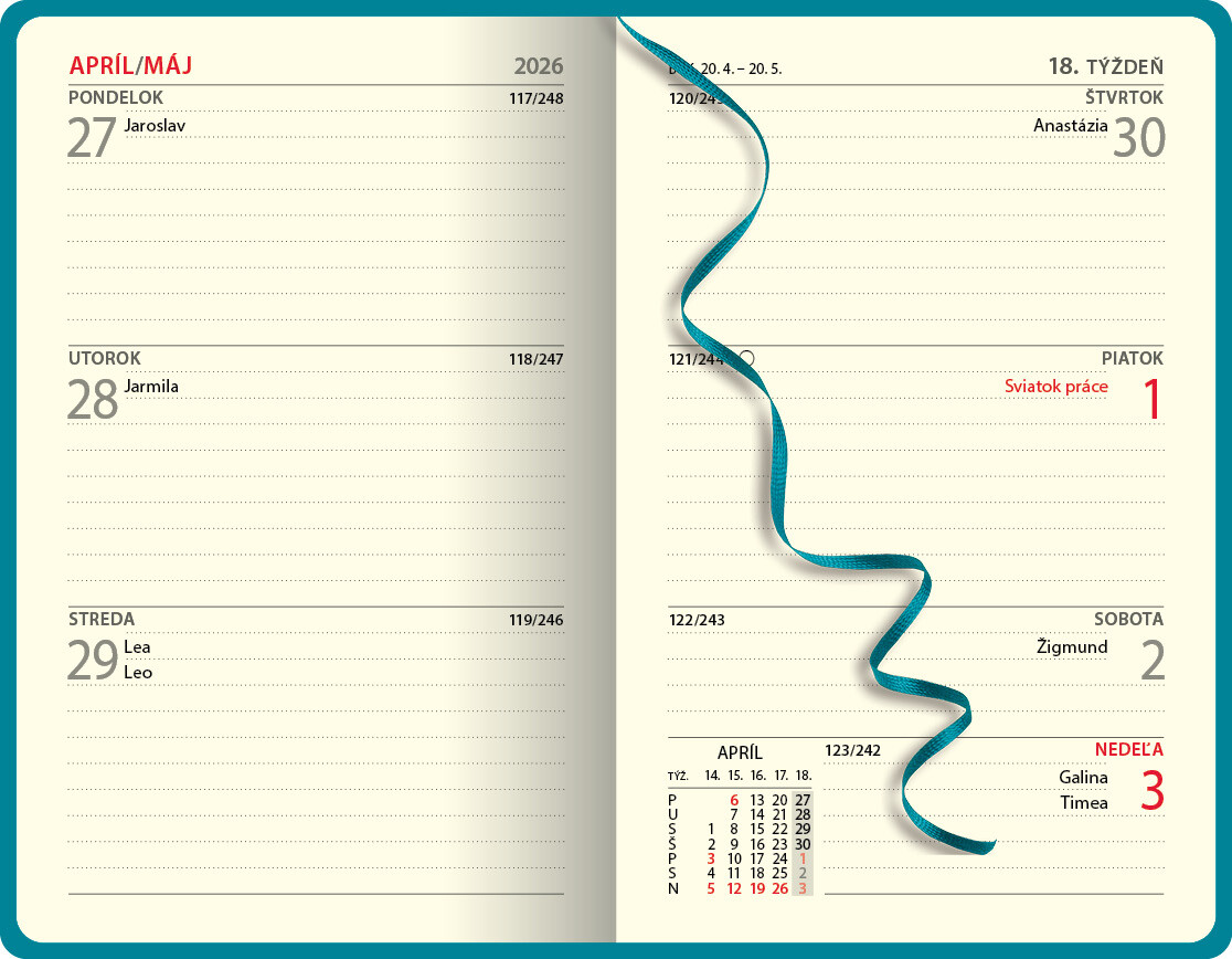 Jedinečný týždenný mini diár potiahnutý kvalitným termocitlivým poťahom. Diár je v pevnej väzbe s prednou penovou doskou, farebnou gumičkou, pútkom na pero a praktickým vreckom. Slovenské prehľadné kalendárium.