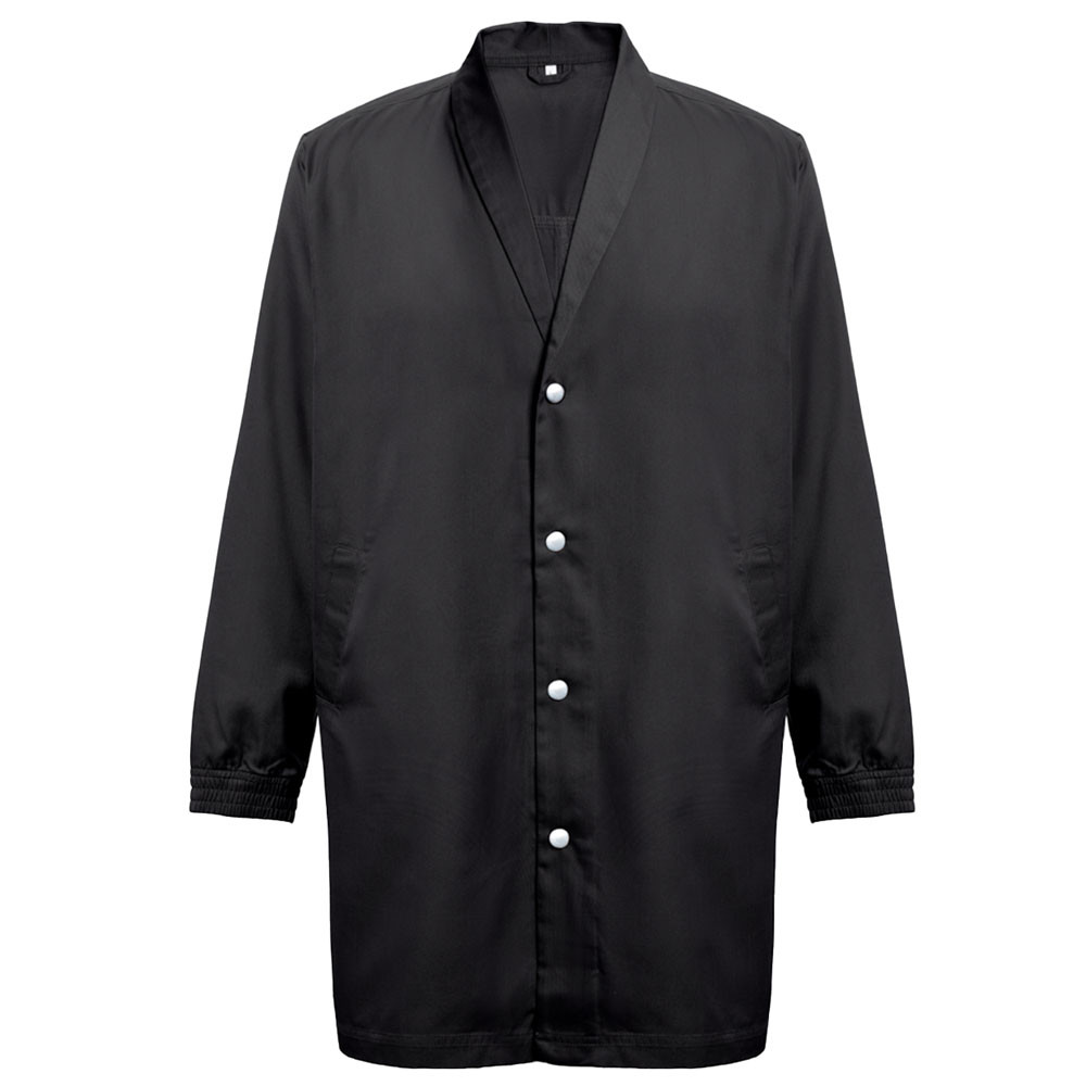 Unisex pracovný plášť. 20% bavlna a 80% polyester: 190 g/m². Štylizovaný golier. Elegantný a štýlový strih s 2 bočnými vreckami. Elastické manžety. Zapínanie na patentky. Zadný rozparok pre lepšiu voľnosť. Veľkosti: S, M, L, XL, XXL, 3XL
