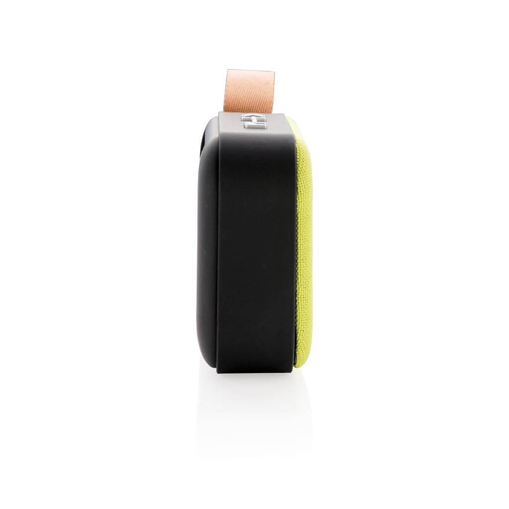 Bezdrôtový 3W reproduktor s mriežkou potiahnutou modernou textíliou. Spodná časť s gumovými prúžkami pre lepšiu priľnavosť k povrchu a kvalitu zvuku. BT 2.1 pre jednoduché bezdrôtové pripojeniami až na vzdialenost 10m. Batéria s kapacitou 300 mAh umožňujúce prehrávanie po dobu až 3 hodín. Vrátane nabíjacieho a zvukového kábla pre prípad priameho drôtového prepojenia s telefónom. Vyrobené z ABS. Kompatibilné so všetkými telefónmi.