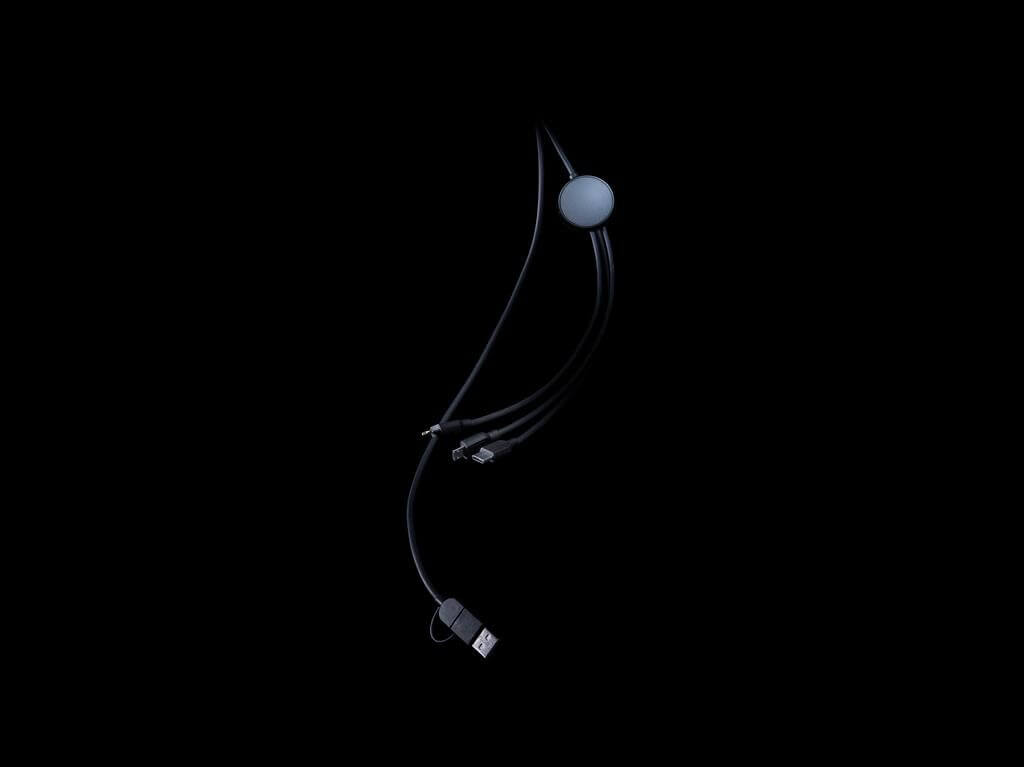 Nabíjací kábel 6 v 1. Puzdro vyrobené z recyklovaného ABS plastu s RCS certifikáciou, kábel z recyklovaného TPE. RCS (Recycled Claim Standard) je globálny štandard, ktorý umožňuje overiť použitie recyklovaného materiálu v produkte naprieč celým dodávateľským reťazcom. Podiel použitého recyklovaného materiálu vzhľadom na celkovú váhu produktu: 57 %. Kábel disponuje 5 konektormi: USB C/USB vstup, USB C/micro USB/iOS výstup. USB C je vhodné na nabíjanie moderných telefónov, ale aj MacBookov. USB A má dvojakú funkciu (vstup aj výstup) pre nabíjanie akéhokoľvek zariadenia z akéhokoľvek iného zdroja. Výrobok je kompletne bez PVC. Balené v FSC® krabičke.
