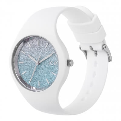Tieto malé biele jemné silikónové hodinky s kovovými detailmi vás rozžiaria vďaka atraktívnemu ciferníku s trblietavým odstupňovaným pozadím, ktoré prechádza z modrej alebo ružovej do striebornej. Ideálne pre svieži, farebný vzhľad!