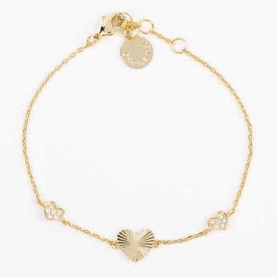 Kolekcia Alix Jewelry je jemná a ženská, s 3 jemnými príveskami srdiečok: stredné, väčšie je jemne gravírované a 2 menšie sú osadené jemným bielym zirkónom. Tieto kusy sú vyrobené z mosadze a sú k dispozícii v zlate alebo striebre a ako náramky alebo náhrdelníky.