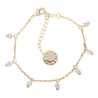 Kolekcia šperkov "Odeon" je nadčasová klasika, ktorá sa hodí ku každému štýlu. Každý z kúziel zdobí jemný zirkón, ktorý mu dodáva decentnú eleganciu. Tento zlatý náramok je luxusný a ženský. Jeho veľkosť je prispôsobivá a je zakončená krásnou doskou s vyrytým ikonickým logom "Cacharel". Musíte mať.