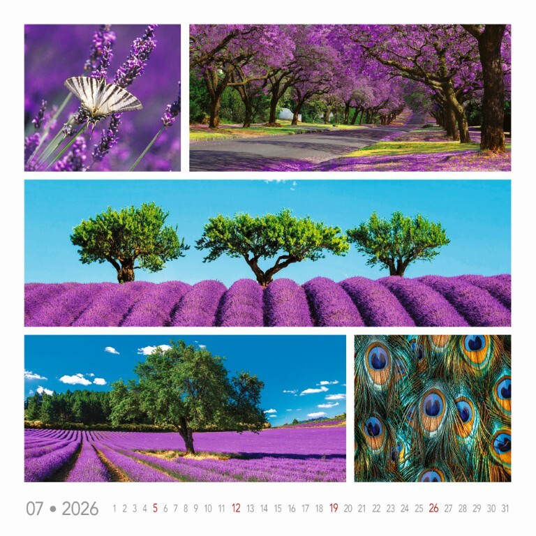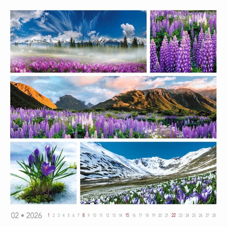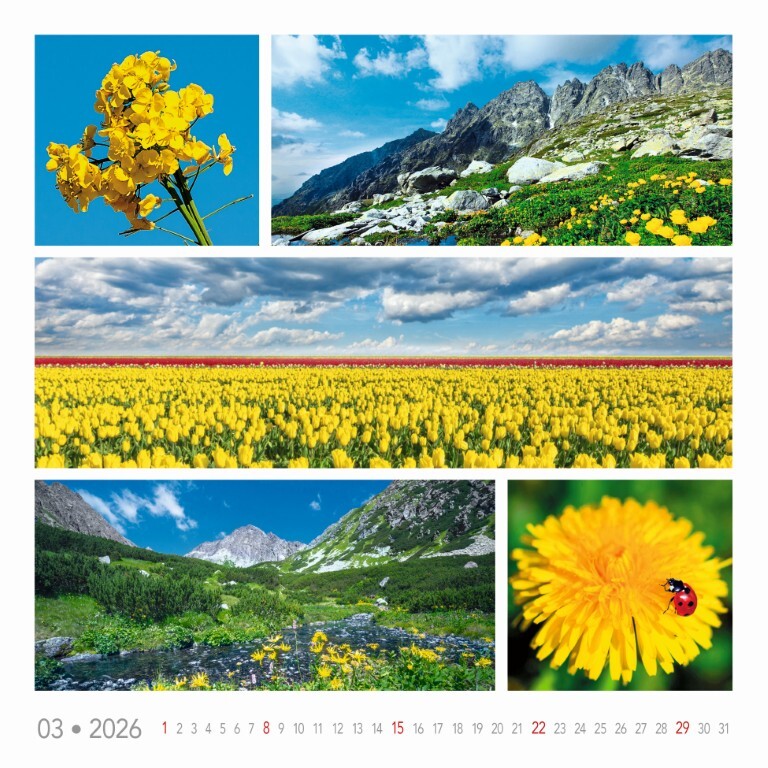 Kalendár, ktorý ti každý mesiac prináša očarujúci mix farebných scenérií – od zimnej krajiny, cez rozkvitnuté čerešne až po exotické miesta a levanduľové lány. Ideálny pre všetkých, ktorí milujú prírodu v jej najpestrejšej podobe.